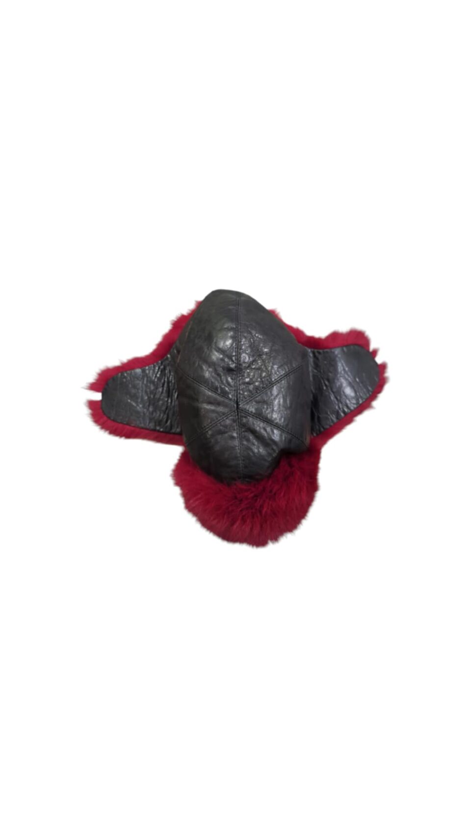 Orginali natūralios odos(raudonos) ir natūralaus kailio kepurė su ausytėmis.