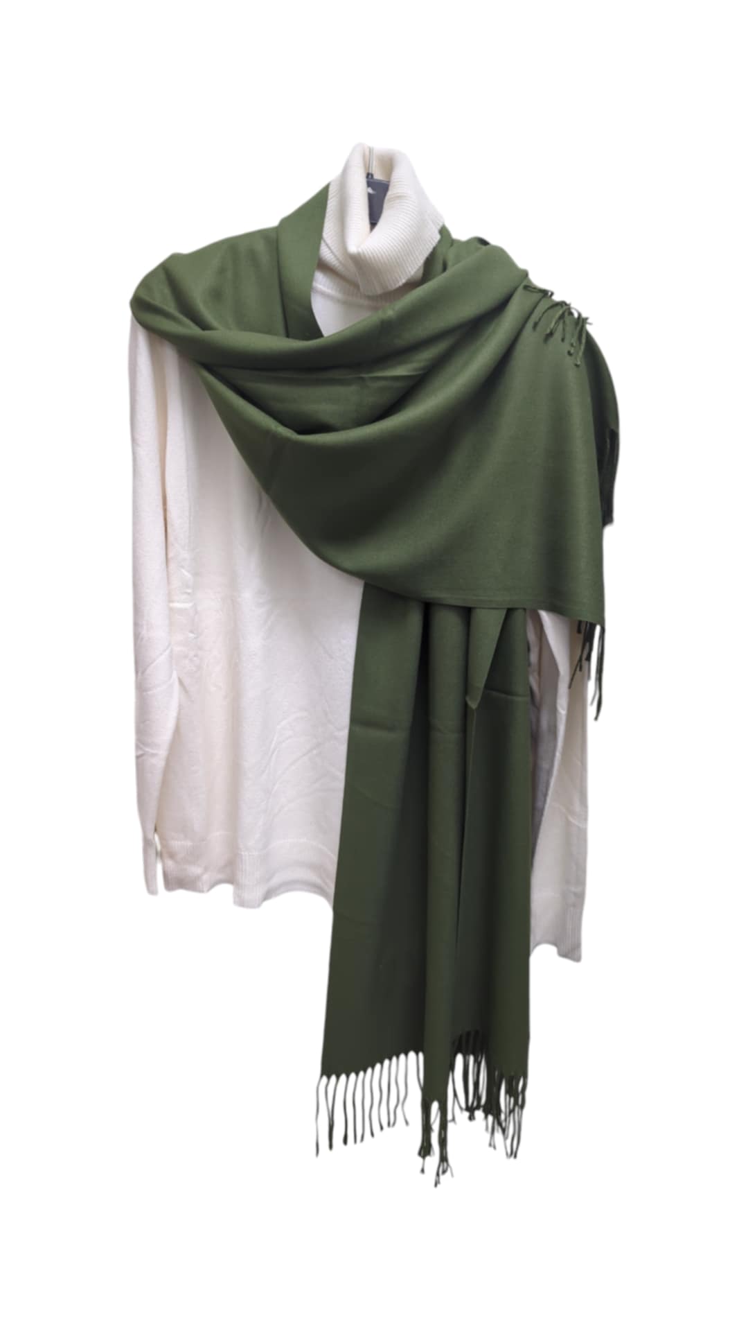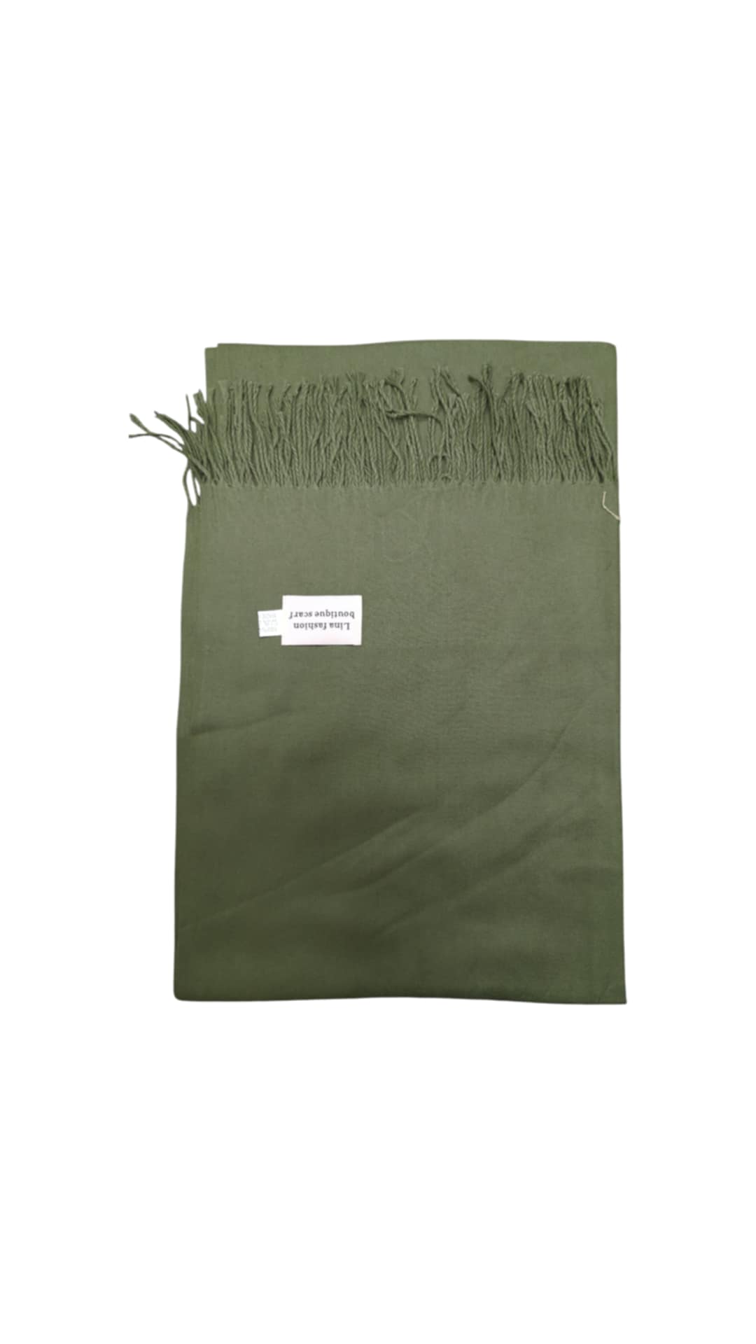 Vienspalvis žalios spalvos VILNOS šalikas. Tai – Lina fashion boutique scarf, gamintojas P.R.C, tai prabangus unisex šalikas su kutais