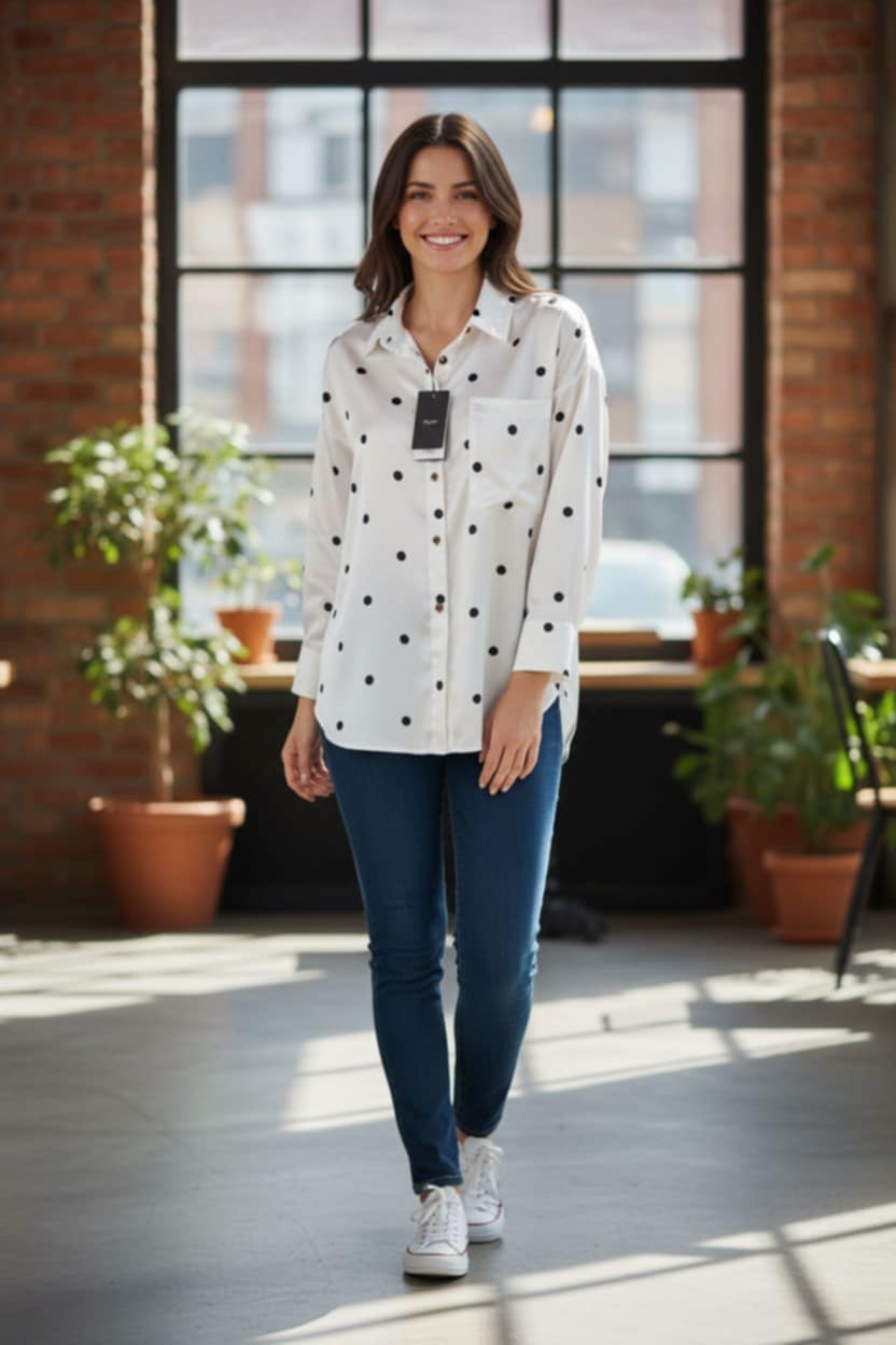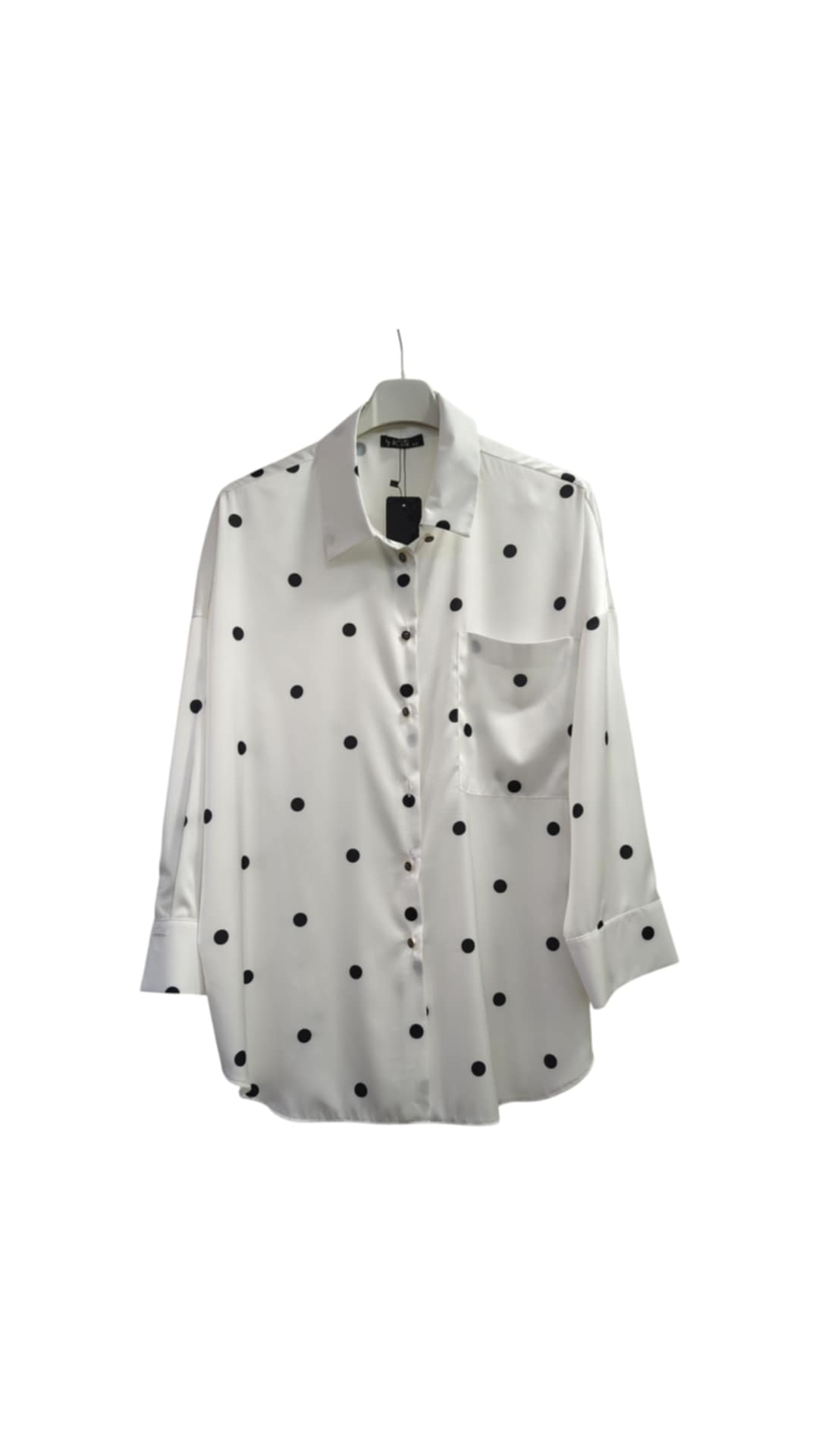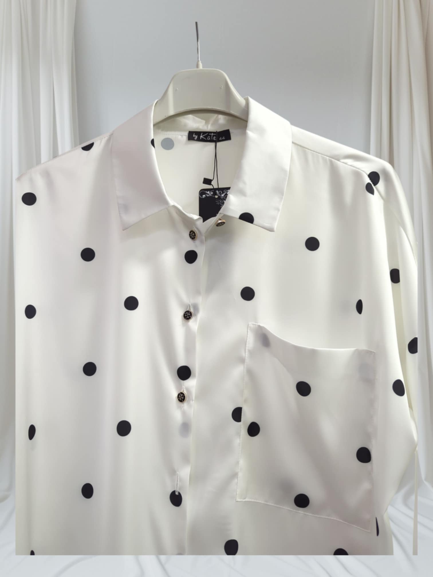 Modernūs moteriški marškiniai by Kate – burbulai viskozė. Tai marškiniai plius dydžio, patogūs dėvėti, susagtomi, nugarinė dalis ilgesnė. Marškinukai su apykaklaite, susagstomi sagomis, rankogalei užsegami. .