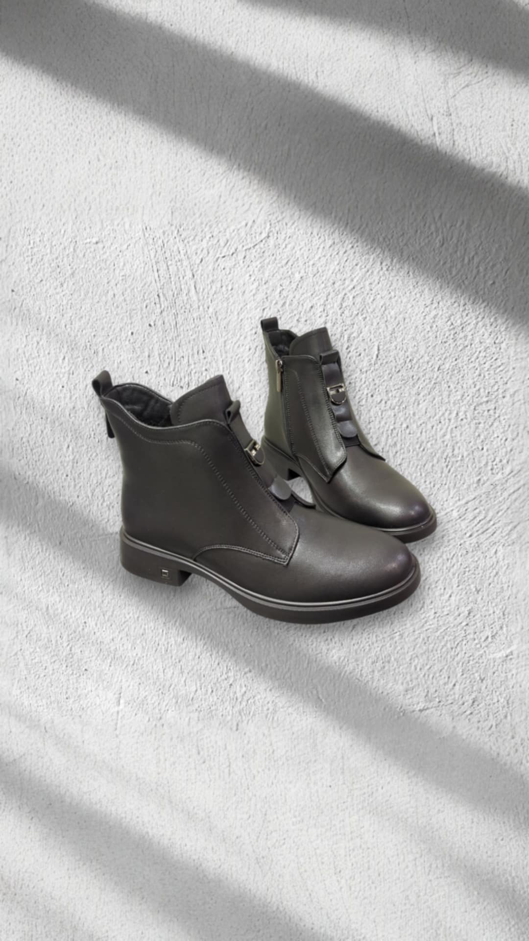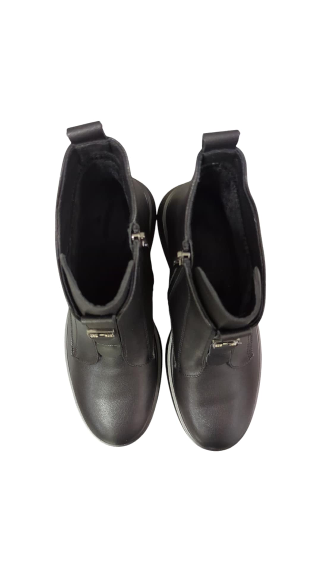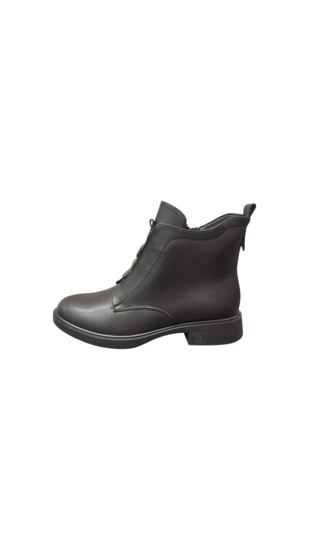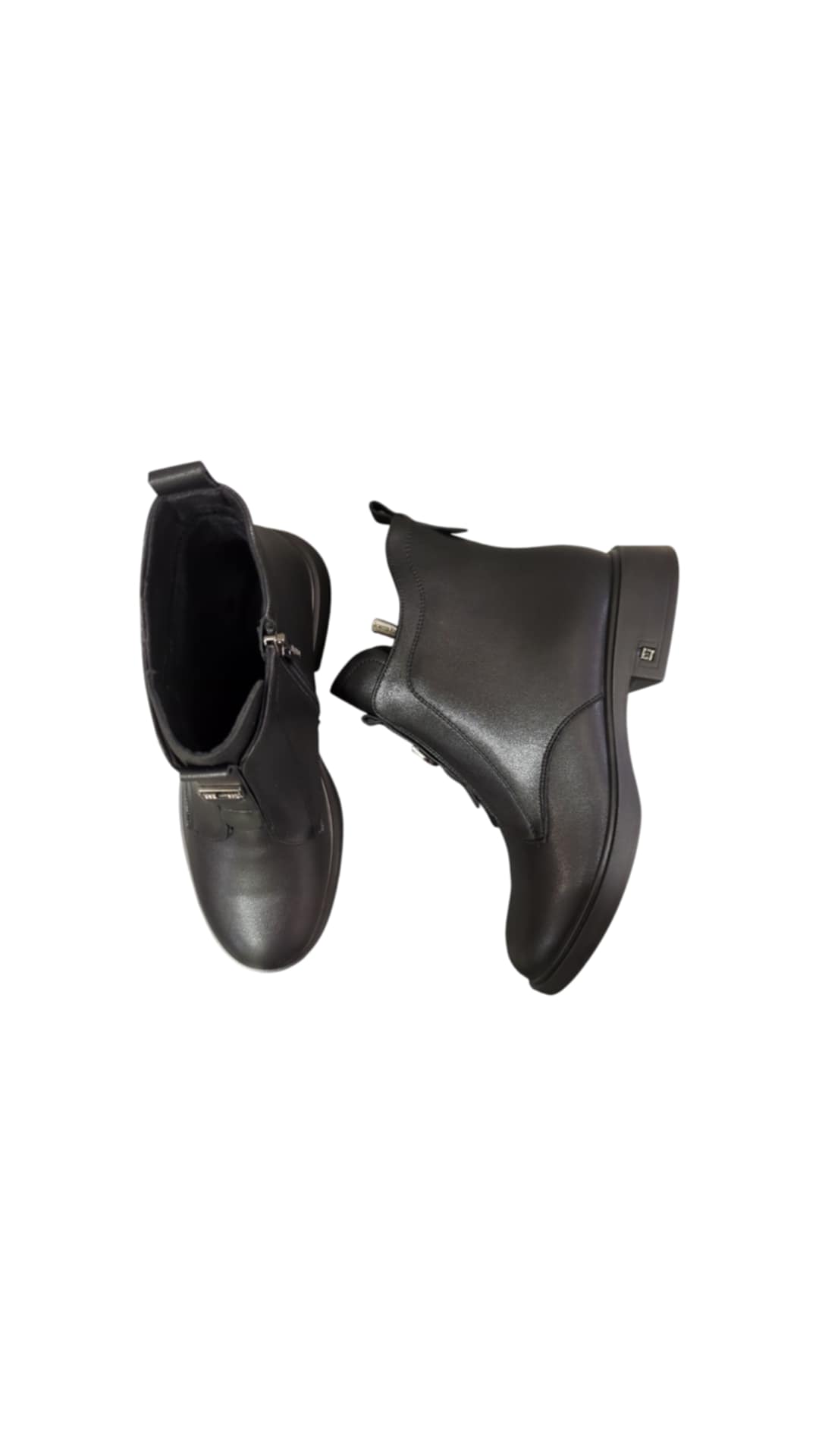 Moteriški LORETTA VITALE juodos spalvos odiniai aulinukai, vidus sintetinis plonas flicas, užsegami užtrauktuku ir suvarstomi.