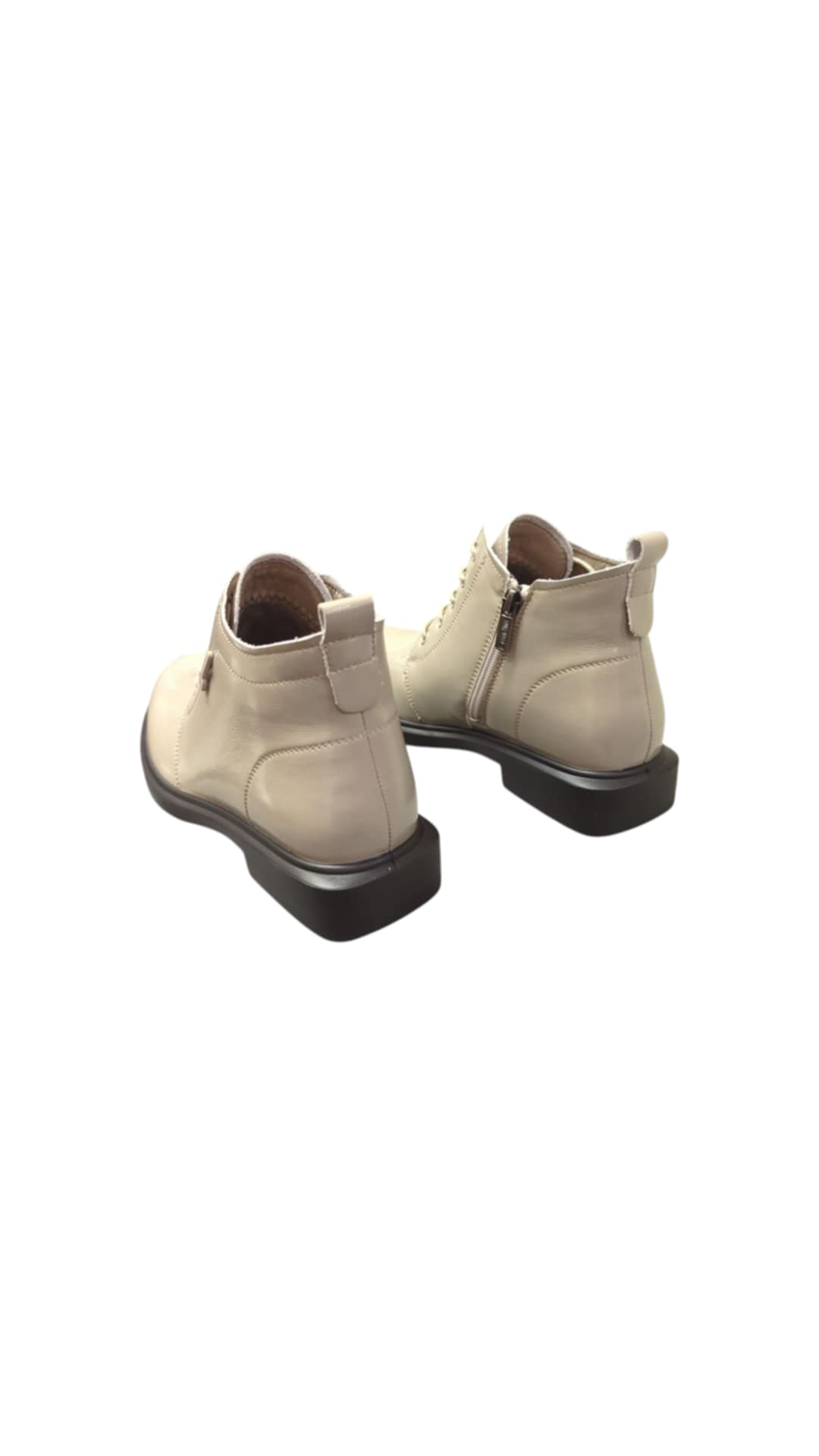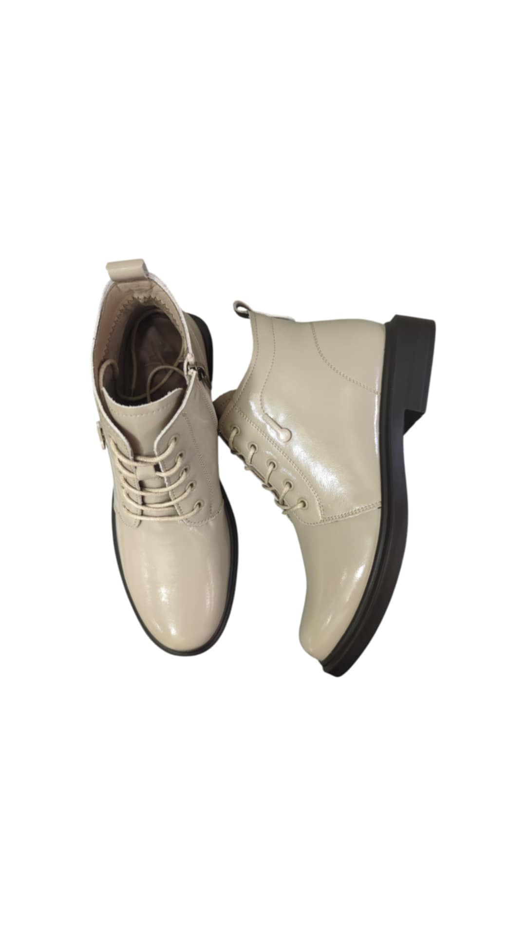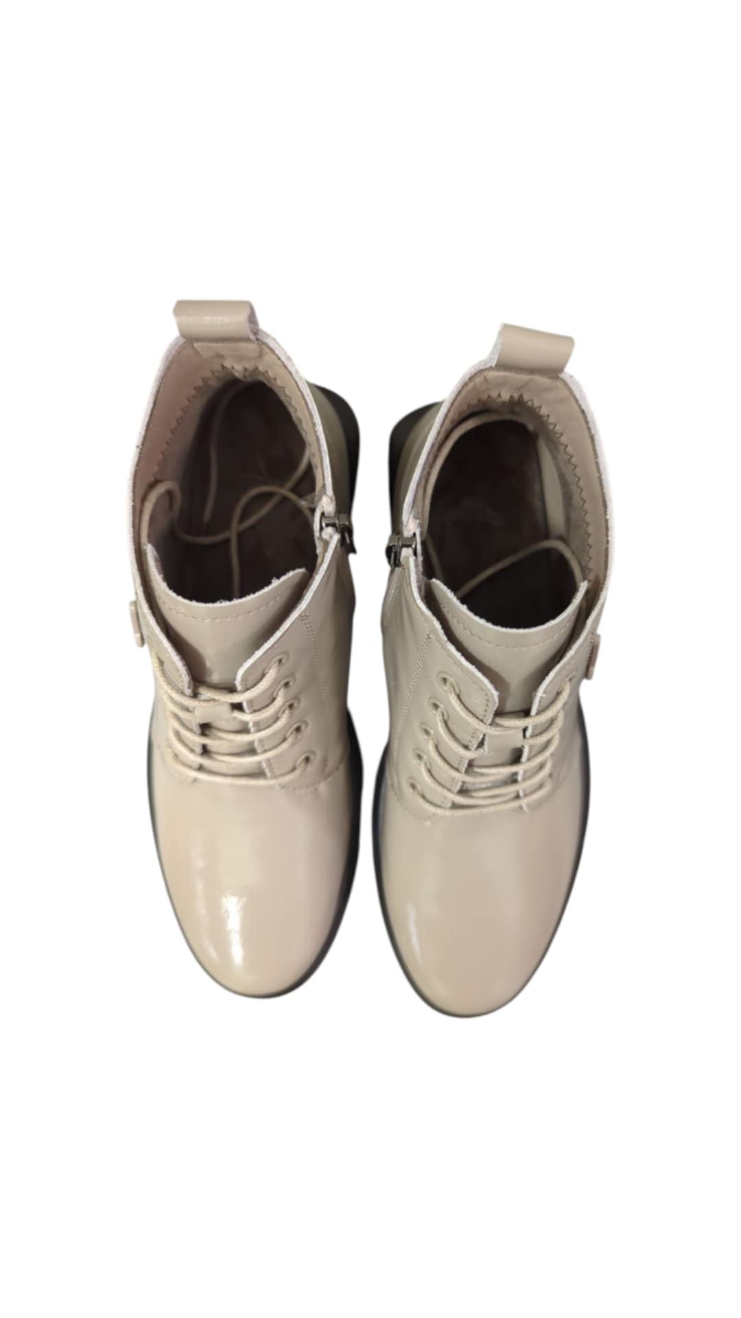 Moteriški LORETTA VITALE lakuotos pilkos odos aulinukai, vidus sintetinis plonas flicas, užsegami užtrauktuku ir suvarstomi.