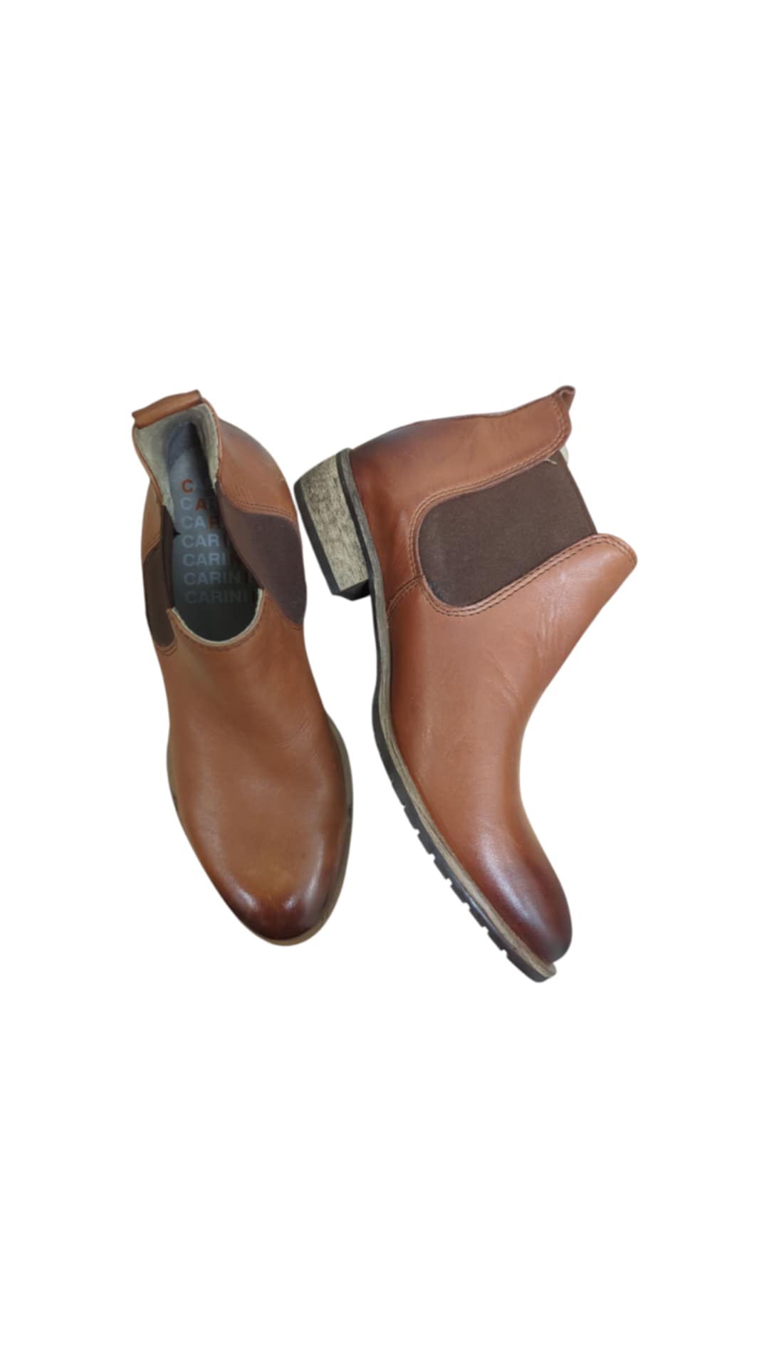 Lygios odos moteriški aulinukai CARINII – rudi batai, oda viršus ir vidus, aukštesnė pakulnė, būsite garantuoti dėl pėdos šilumos ir apsaugoti nuo slidaus grindinio paviršiaus.