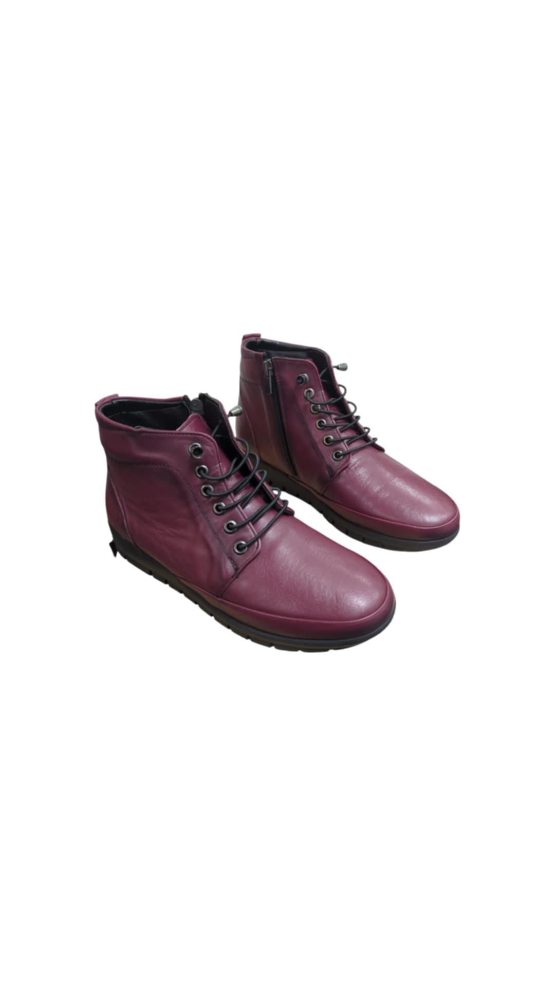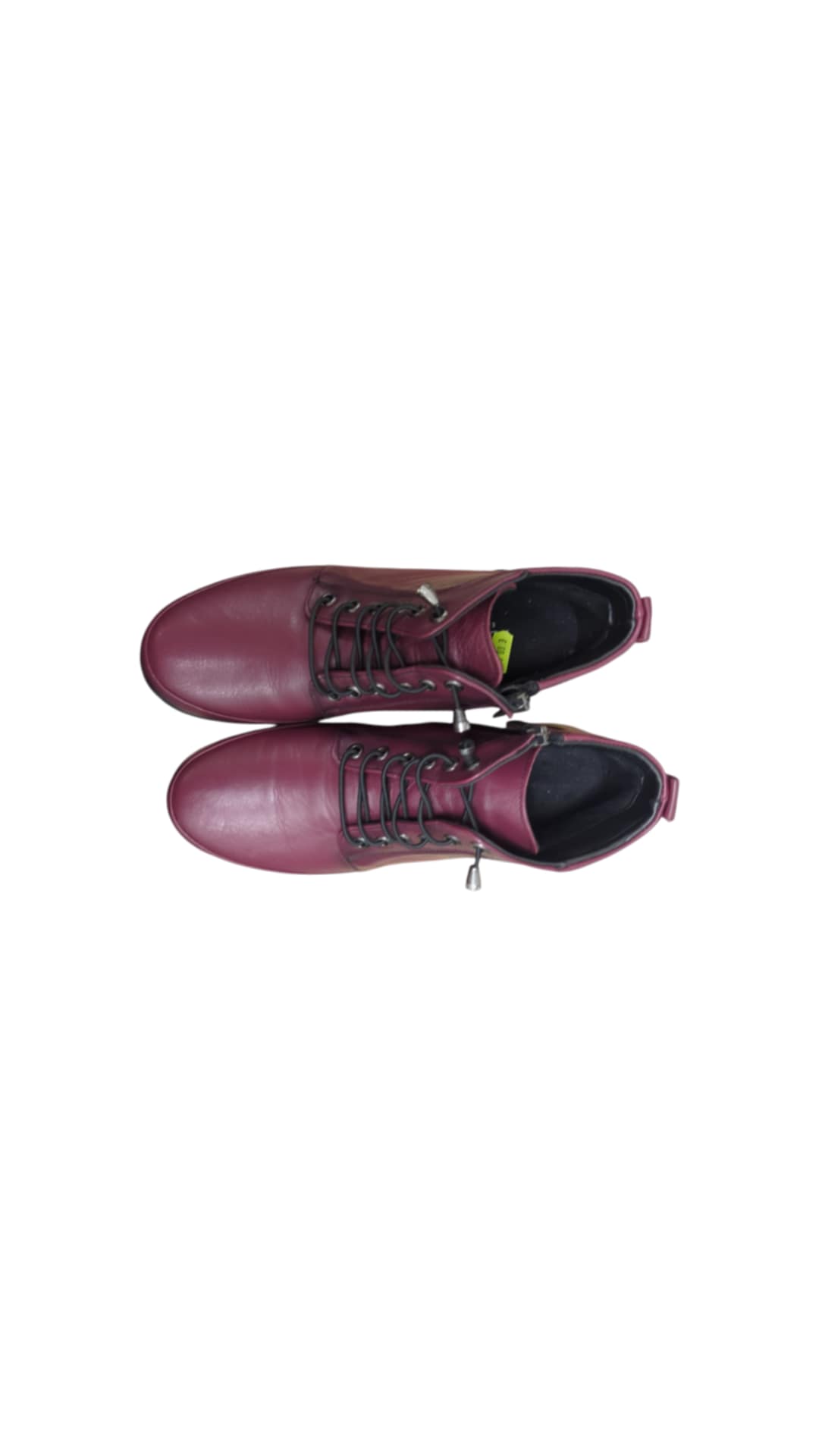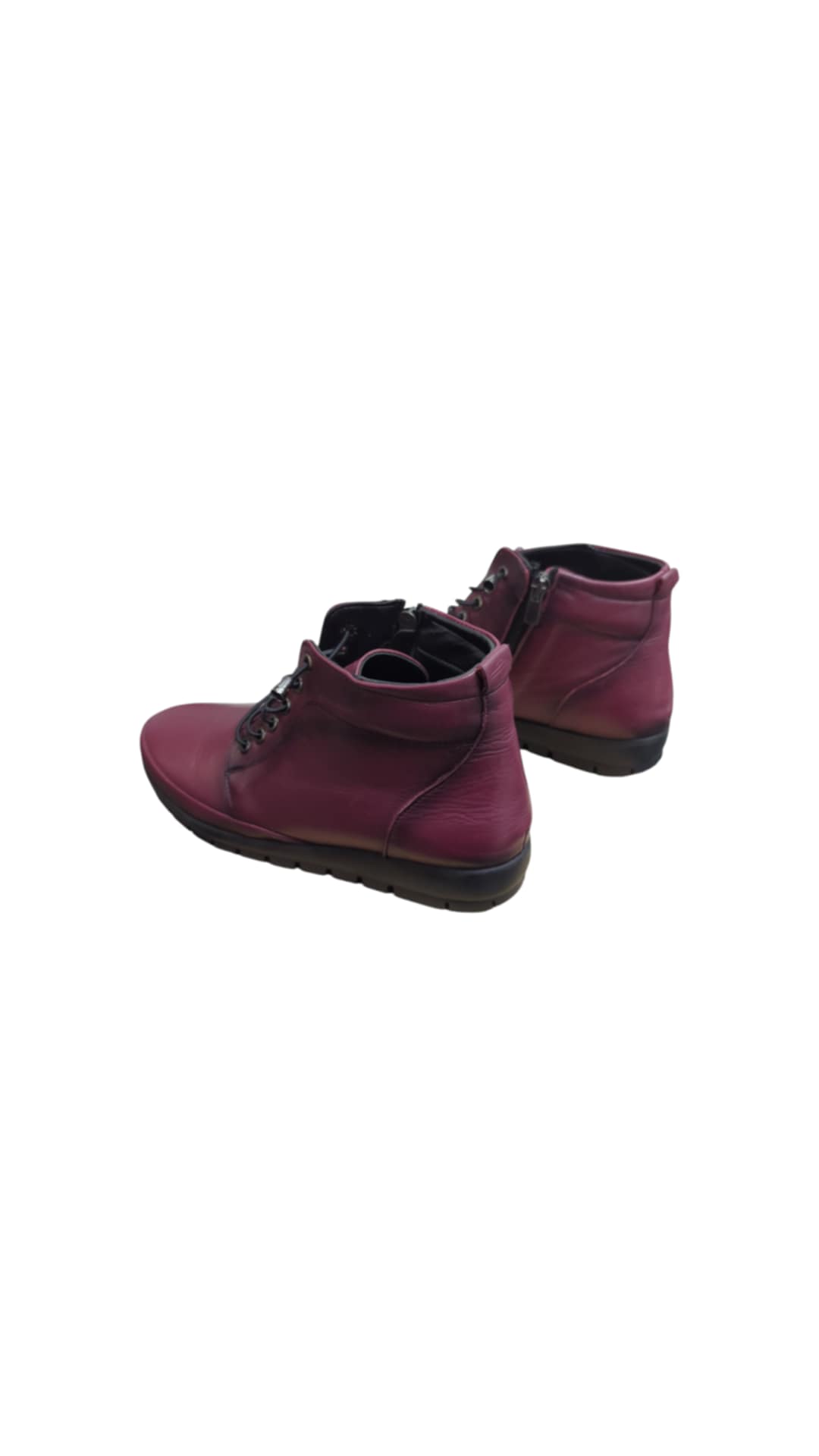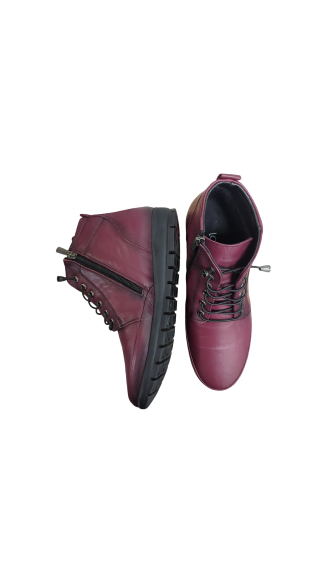 Moteriški LORETTA VITALE bordo spalvos, odos aulinukai, vidus sintetinis plonas flicas, užsegami užtrauktuku ir suvarstomi.