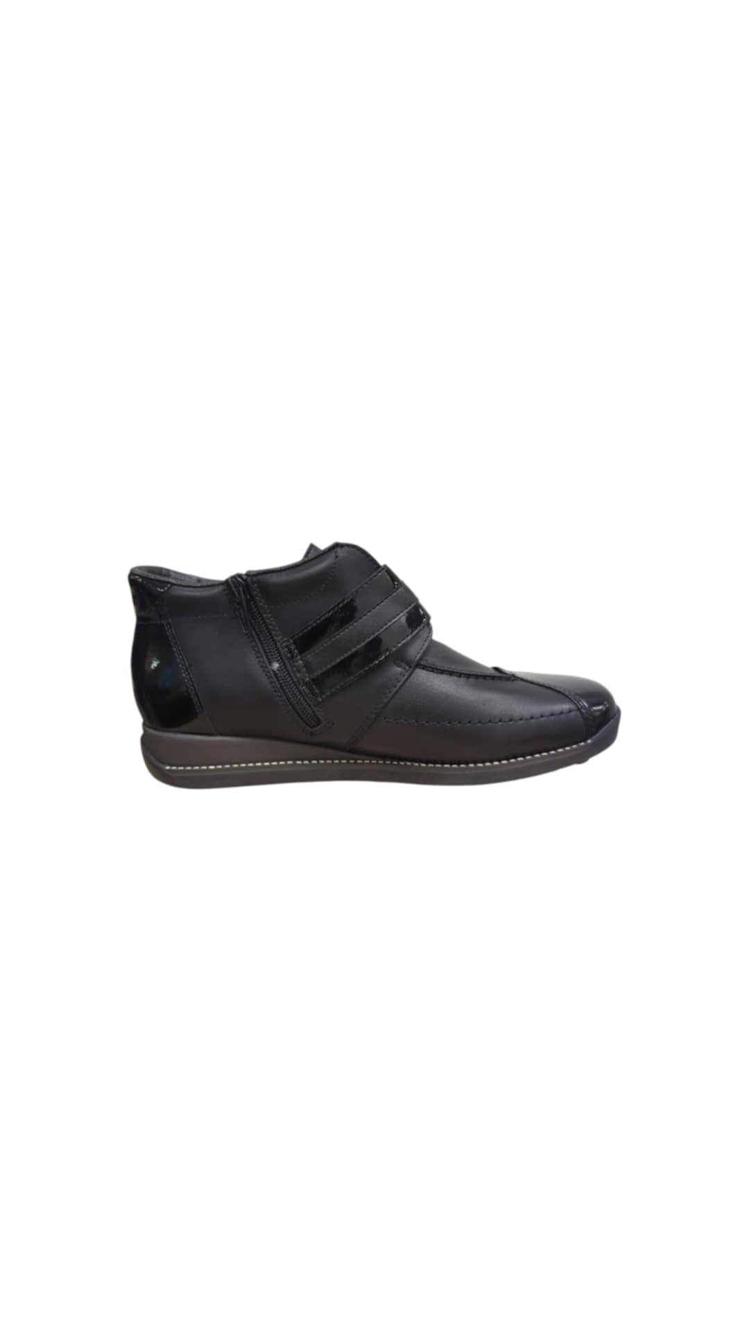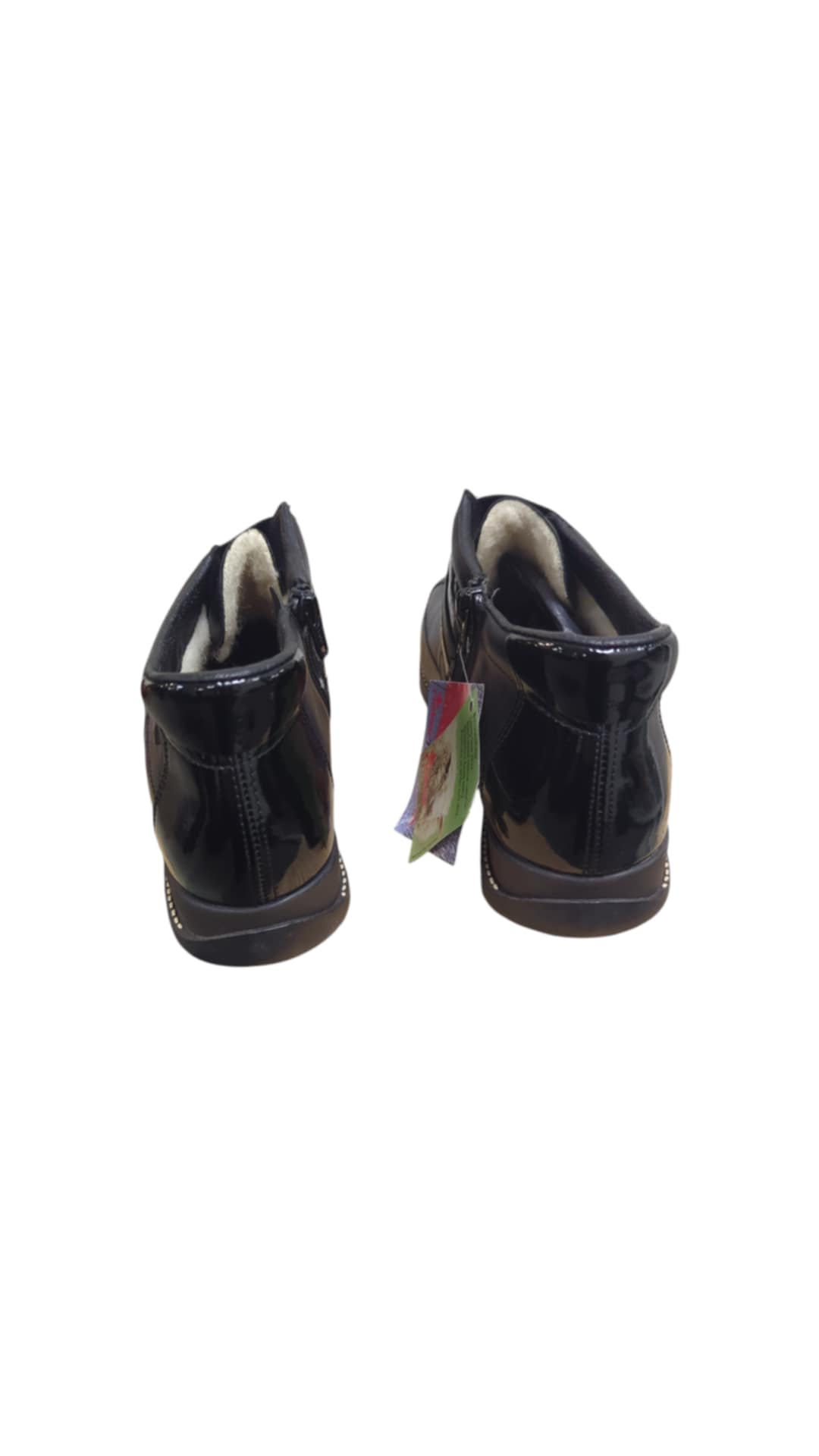 Moteriška odinė avalynė, vidus – balta vilna,  užsegami užtrauktuku.