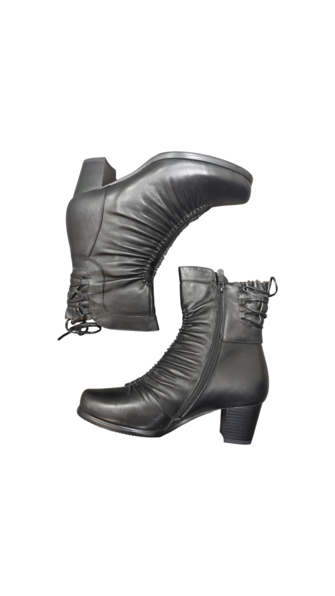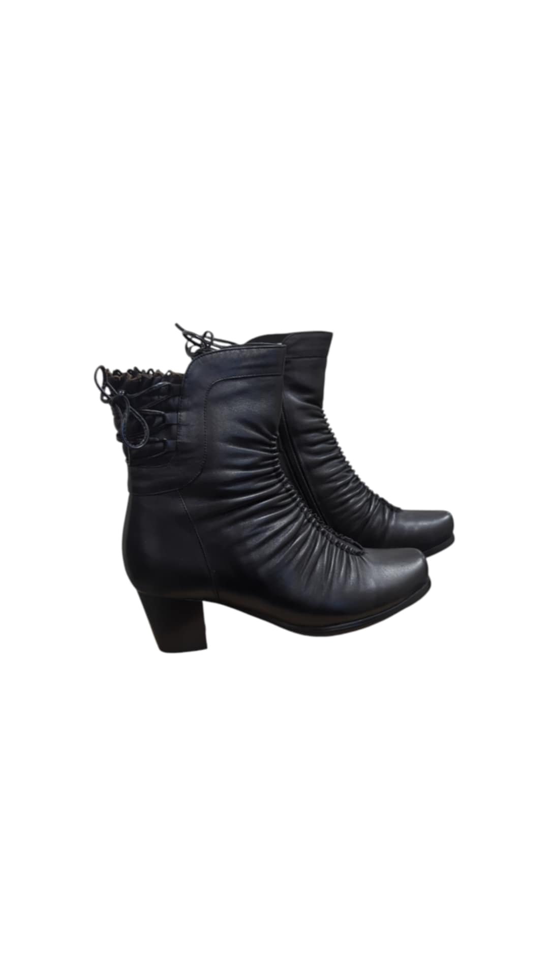 Moteriški lygios odos avalynė, vidus natūralus kailis, užsegami – suvarstomi.