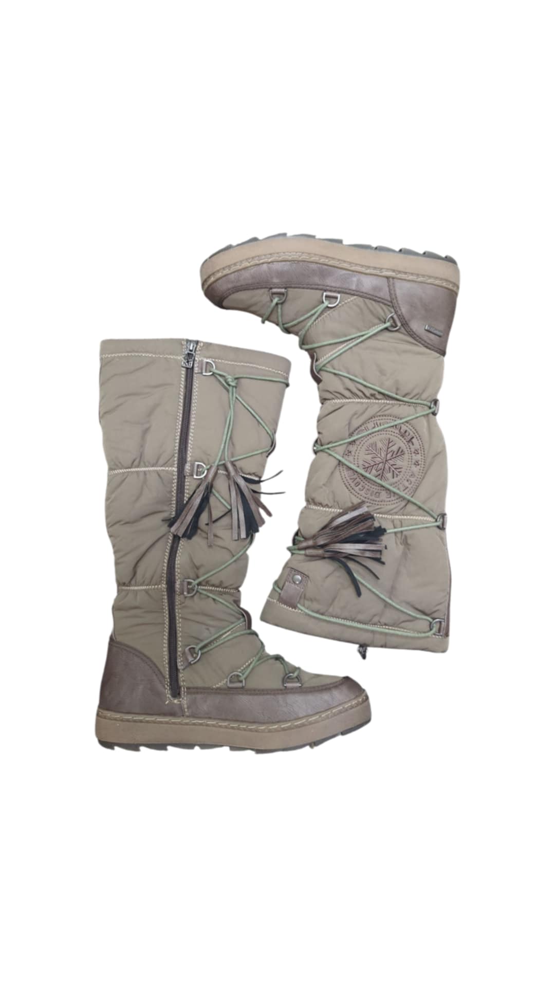 Sniego batai, ilgaauliai, vidus sintetinis – Tamaris, tai batai pritaikyti žiemos sezonui, būsite garantuoti dėl pėdos šilumos ir apsaugoti nuo slidaus grindinio paviršiaus. Avalynė, užsegama užtrauktuku, suvarstomi – leid=ia reguliuoti blauzdos plotį.