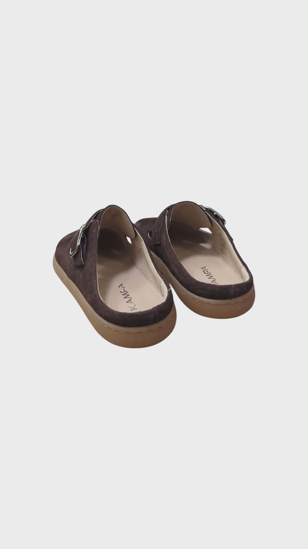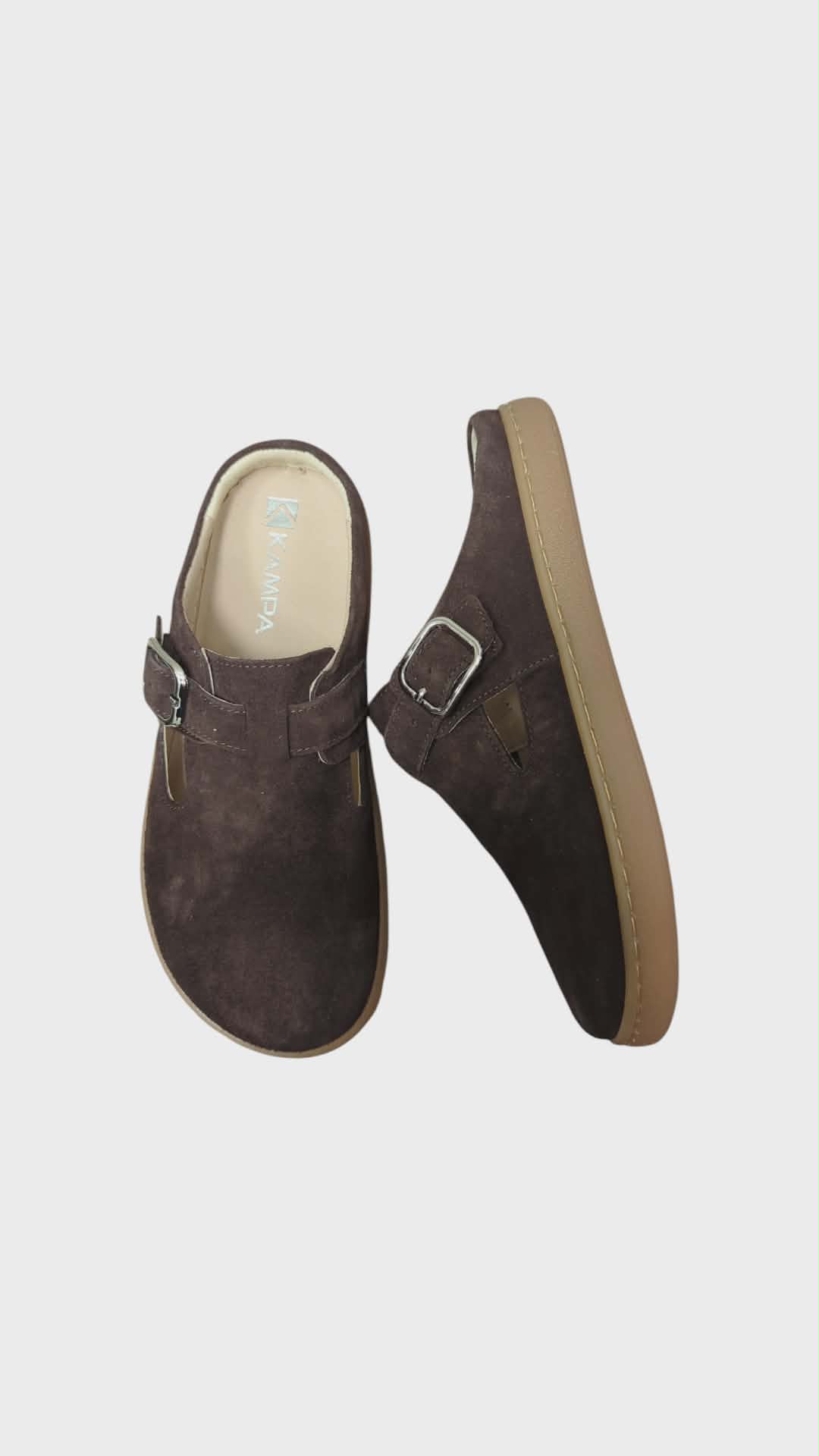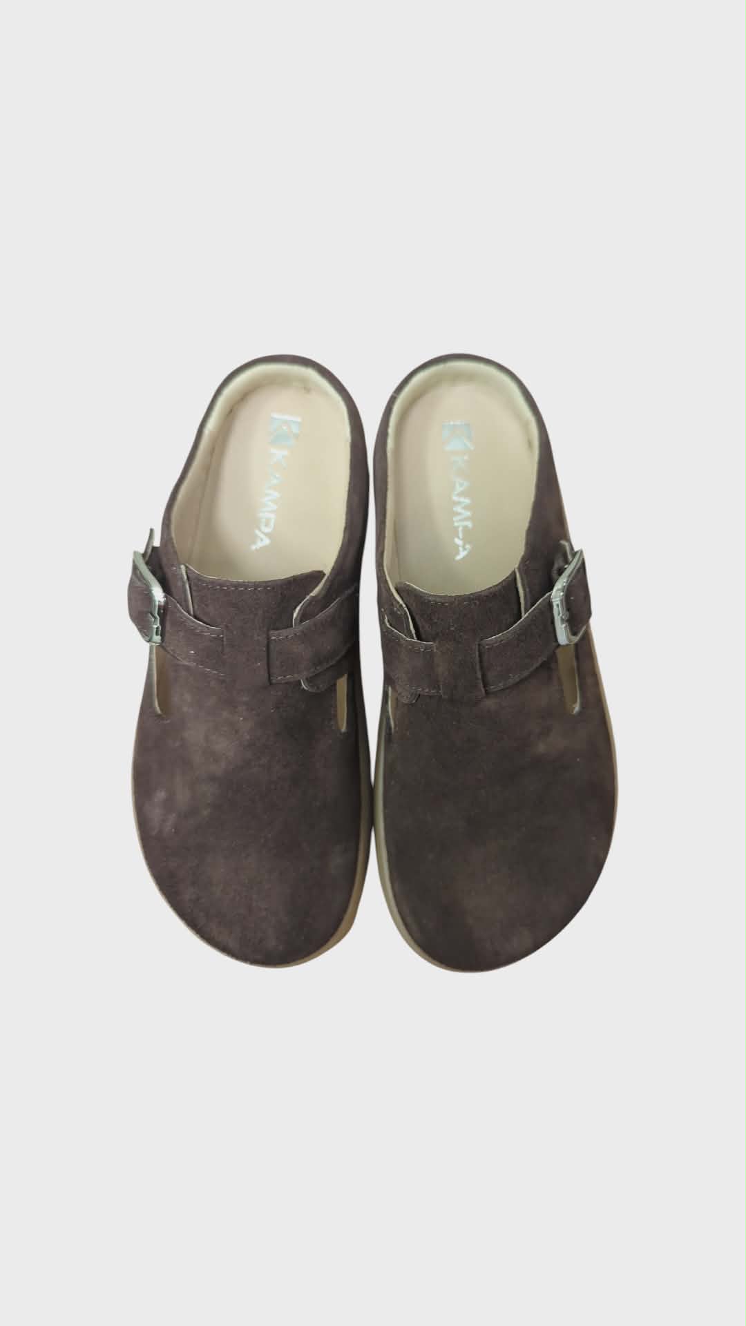KAMPA odinės šlepetės, dengtais pirštais, ruda spalva.