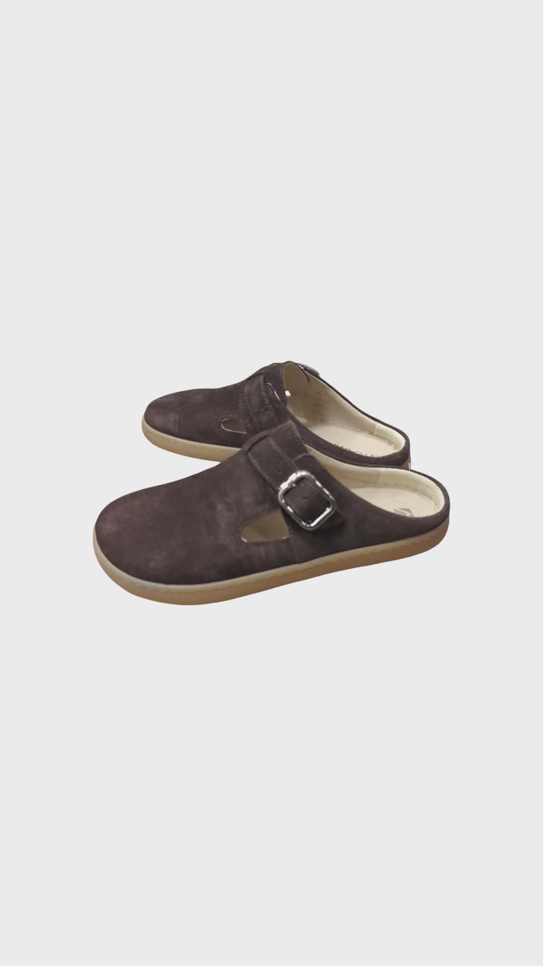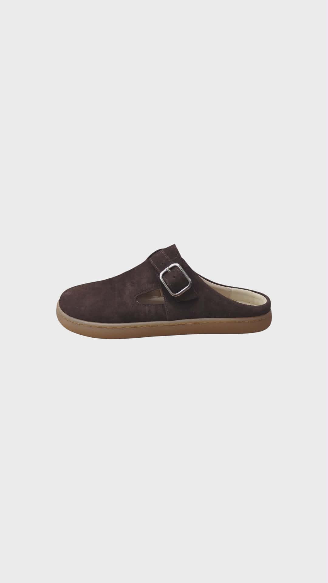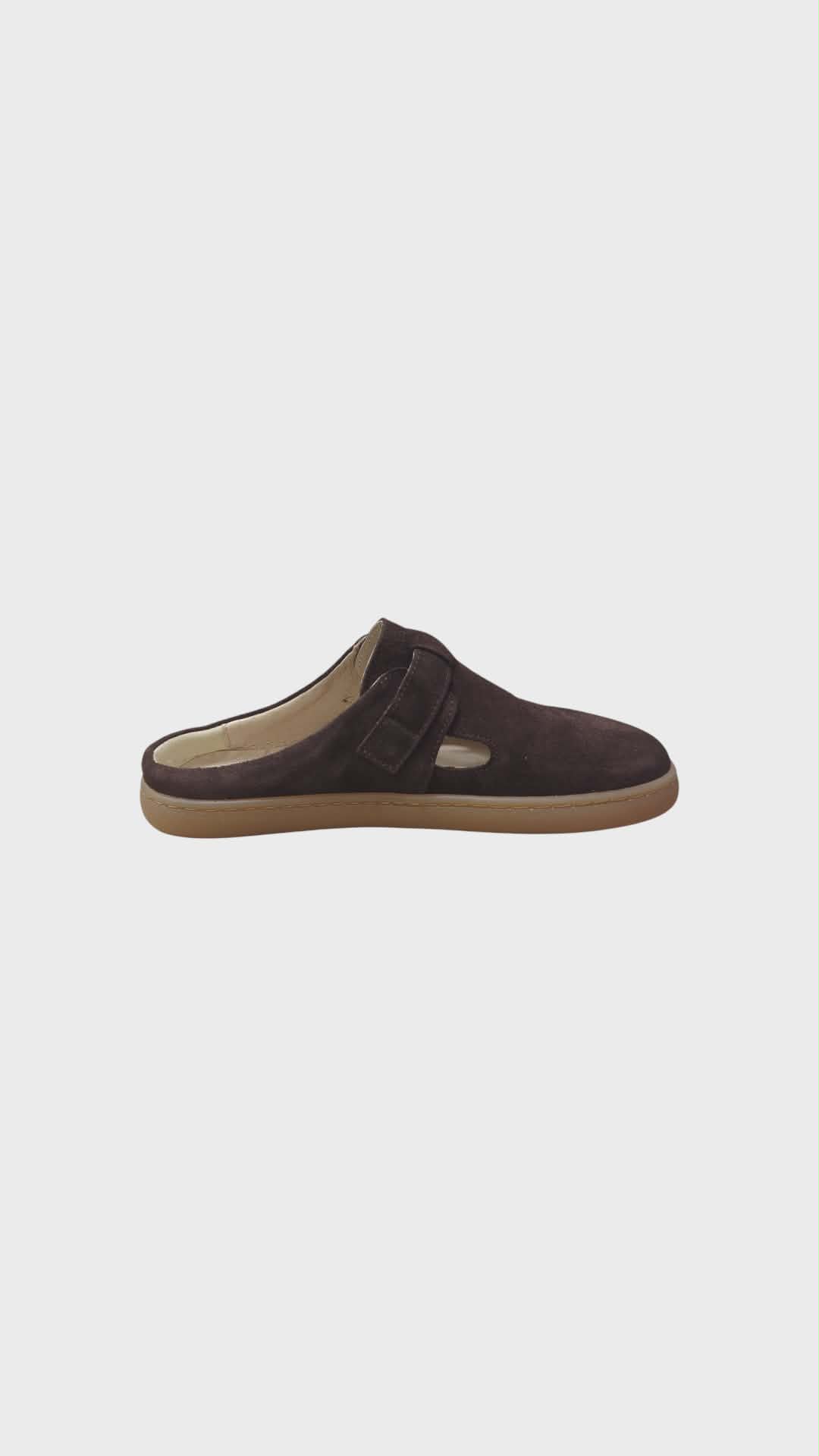 KAMPA odinės šlepetės, dengtais pirštais, ruda spalva.
