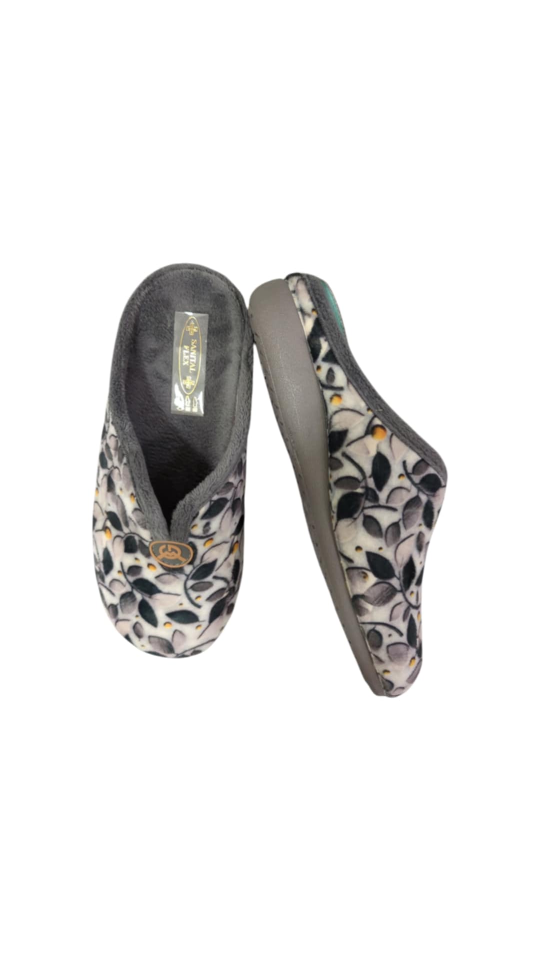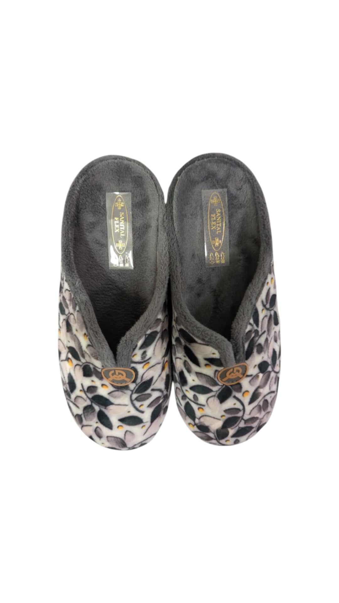 Moteriškos šlepetės – SANITAL FLEX-pilno pado,  tai veliūras, vidus  dirbtinis kailiukas, pakelta pakulne, neslystančios, uždarais pirštais.
