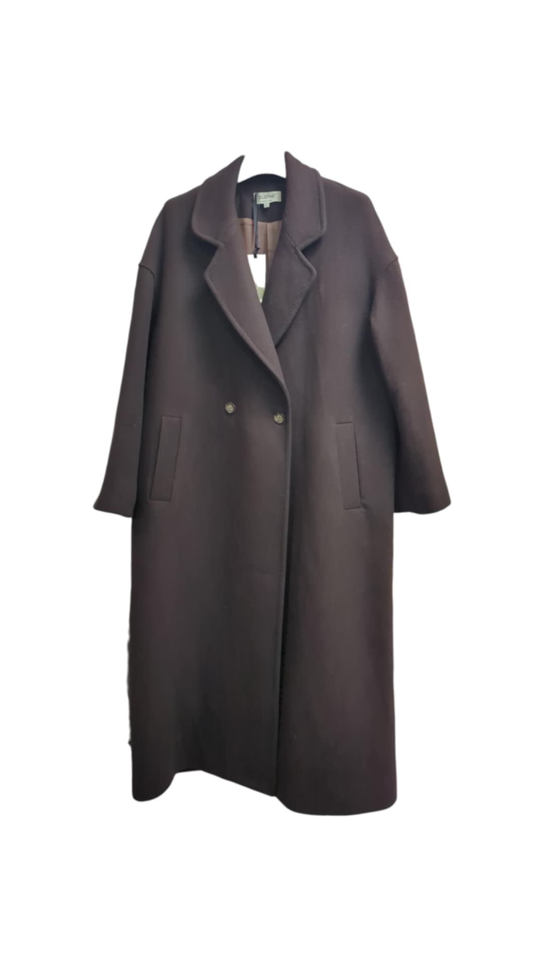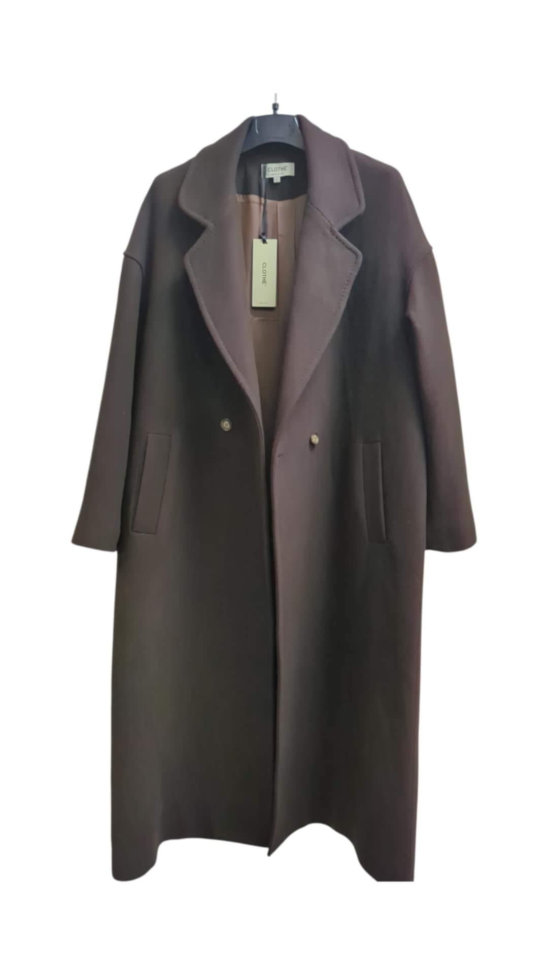 Pavasario paltas CLOTHE – BRAUWN ILGAS. Tai didesnio dydžio, patogus dėvėti, vidus su viskozės pamušalu, t.y. lengvas, šiltas. Paltas vidus ir išorė – vilna, susagtomas sagomis, dvibortis t.y. galima padidinti apimtį persiuvus sagas.turi 2 kišenes ir 1 vidinę.