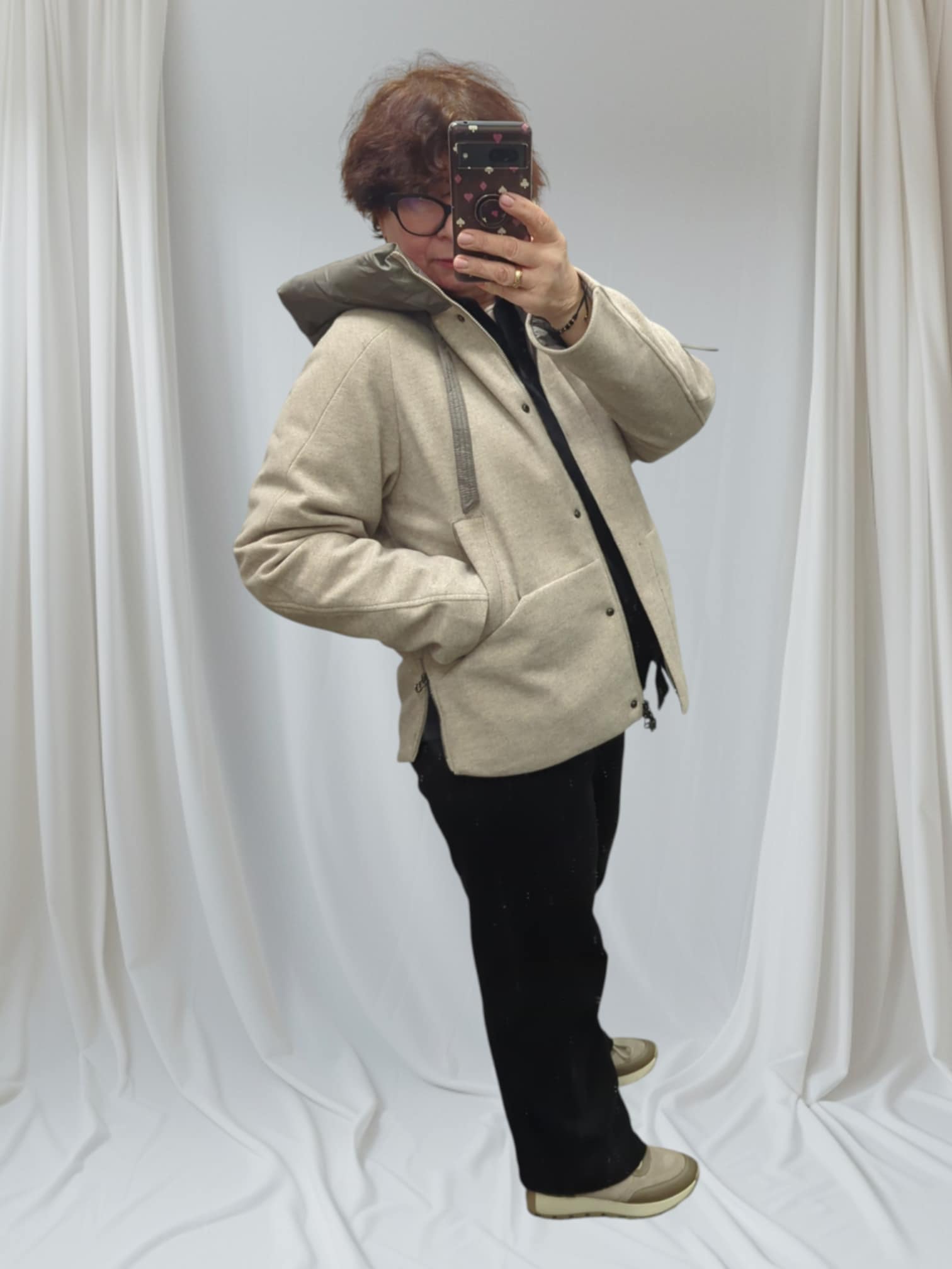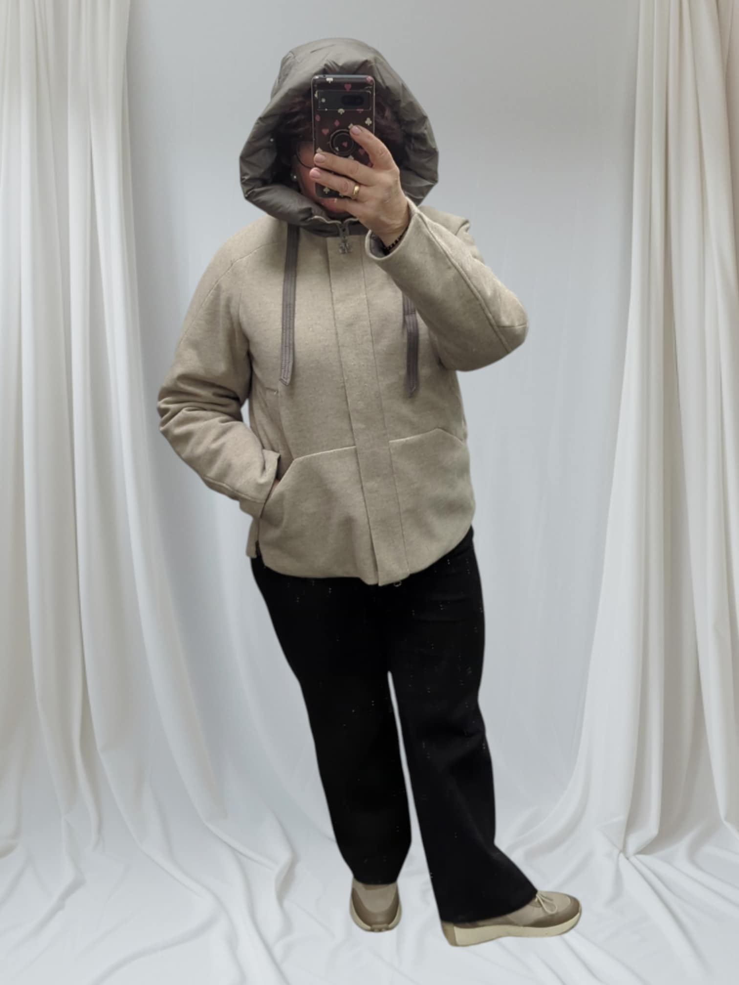 Pavasario puspaltis-striuke Mishele – puspaltis, pagamintas iš minkšto ir patogaus audinio, kuris puikiai Jus šildys. Tai didesnio dydžio, patogus dėvėti, vidus pašiltintas plonu sinteponu, t.y. lengvas, šiltas. Striukės vidus slidus, patogu dėvėti, susagtomas knopkėmis ir užtrauktuku, Turi 4 kišenes. Madingas ir elegantiškas stilius, kapišonas iš kito audinio, ilgos rankovės, klubus galima praplatinti šoninių užtrauktukų pagalba, tiesios linijos, kišenės išorėje.
