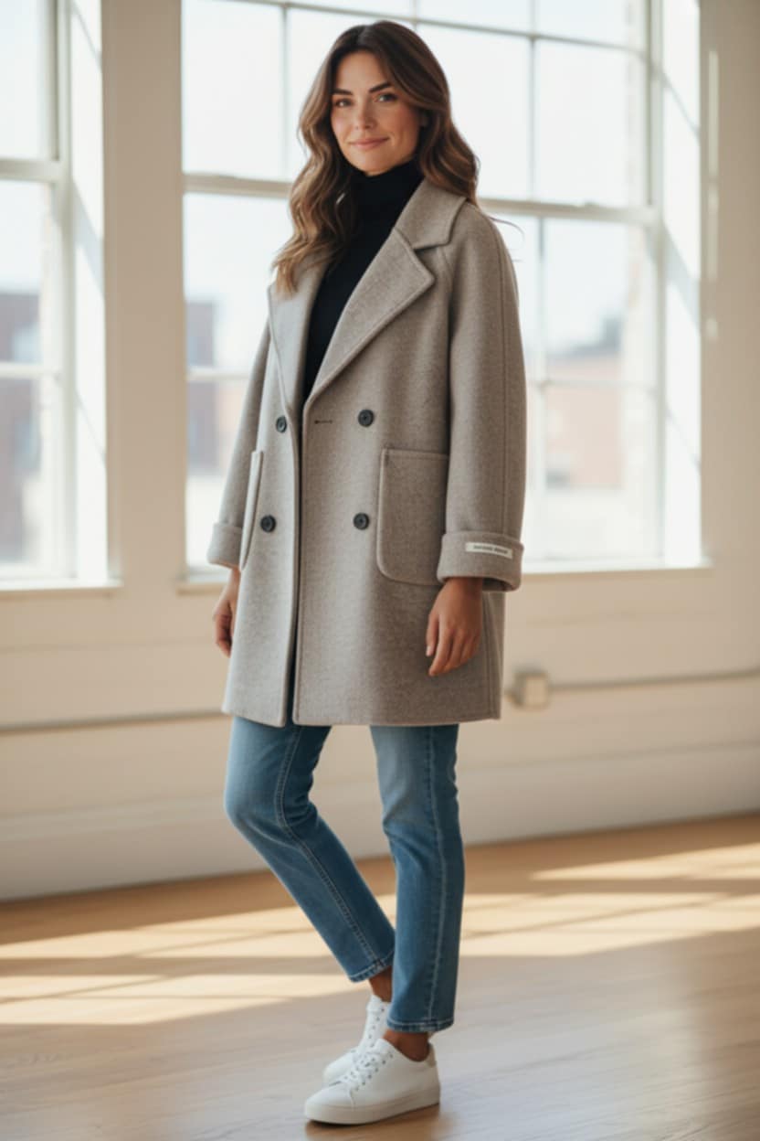 Pavasario paltas classic – Melanžas, pagamintas iš minkšto ir patogaus vilnos audinio, kuris puikiai Jus šildys. Tai didesnio dydžio, patogus dėvėti, vidus be pamušalo, t.y. lengvas, šiltas. Paltas vidus ir išorė – vilna, susagtomas sagomis, dvibortis t.y. persiuvus sagas dydis padidėja per krūtinę ir klubus iki 10 cm.,turi 2 kišenes. Madingas ir elegantiškas stilius, ilgos rankovės, atlenkiamos, tiesios linijos, kišenės išorėje.