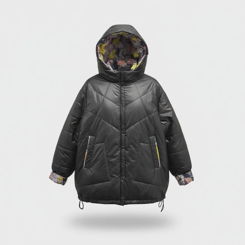 Striukė Janiee – Juoda ir kita pusė marga, tai dvipusė. Tai didesnio dydžio, patogi dėvėti. Janiee sagtomas – užtrauktuku, turi 2 kišenes ir 1 vidinę.