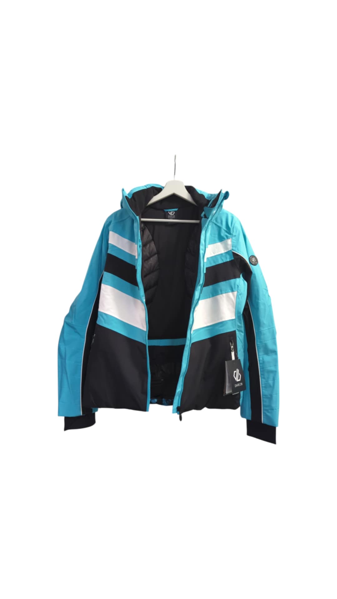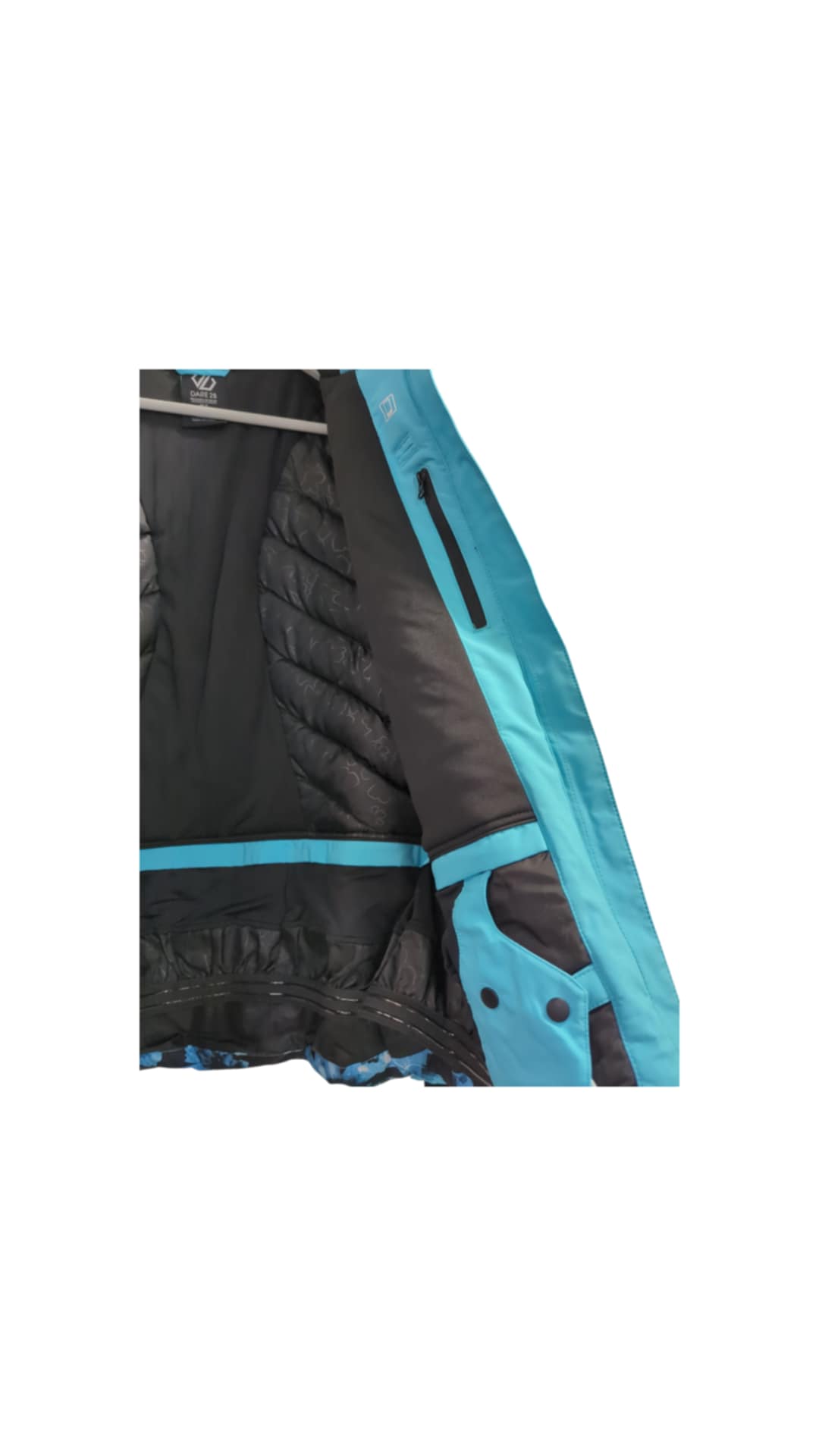 Striukė DARE 2B, vandeniui atspari, žydros/juodos spalvos. Tai slidinejimui ir ne tik skirta striuke, patogi dėvėti, vidus užpildytas sinteponu, t.y. lengvas, šiltas. Vidus ir išorė – poliesteris, susegama užtrauktuku,turi 2 kišenes ir 2 vidines skirtas telefonui, ir kitam. Su paminkštintu žieminiu kapišonu, dygsniuota. Gamintojas – ES.