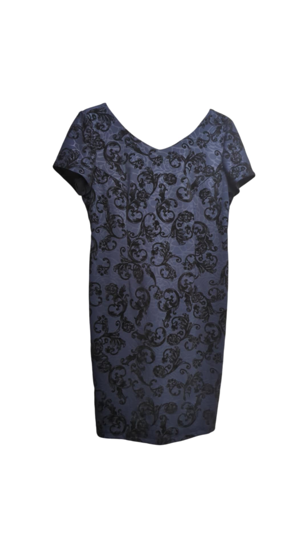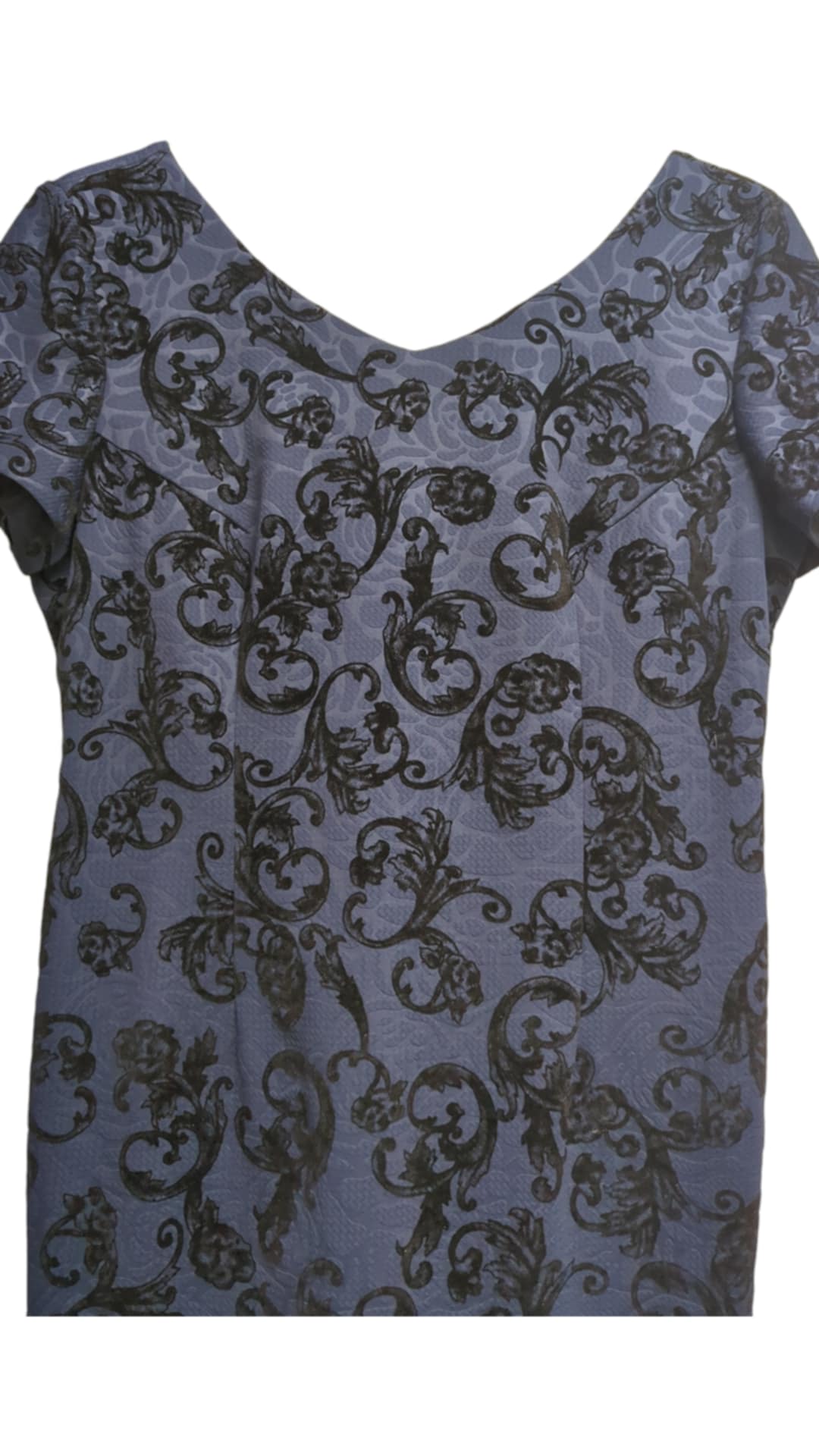 TESSA – Clasik midi ilgio mėlyna suknelė. Tai suknelė su pabrėžta liemens linija, tamsiai mėlyna su veliūro ornamentais, klasikinio stiliaus,patogi dėvėti. Užsegama nugaroje, su apkantuota apykaklaite. Gamintojas – ES.