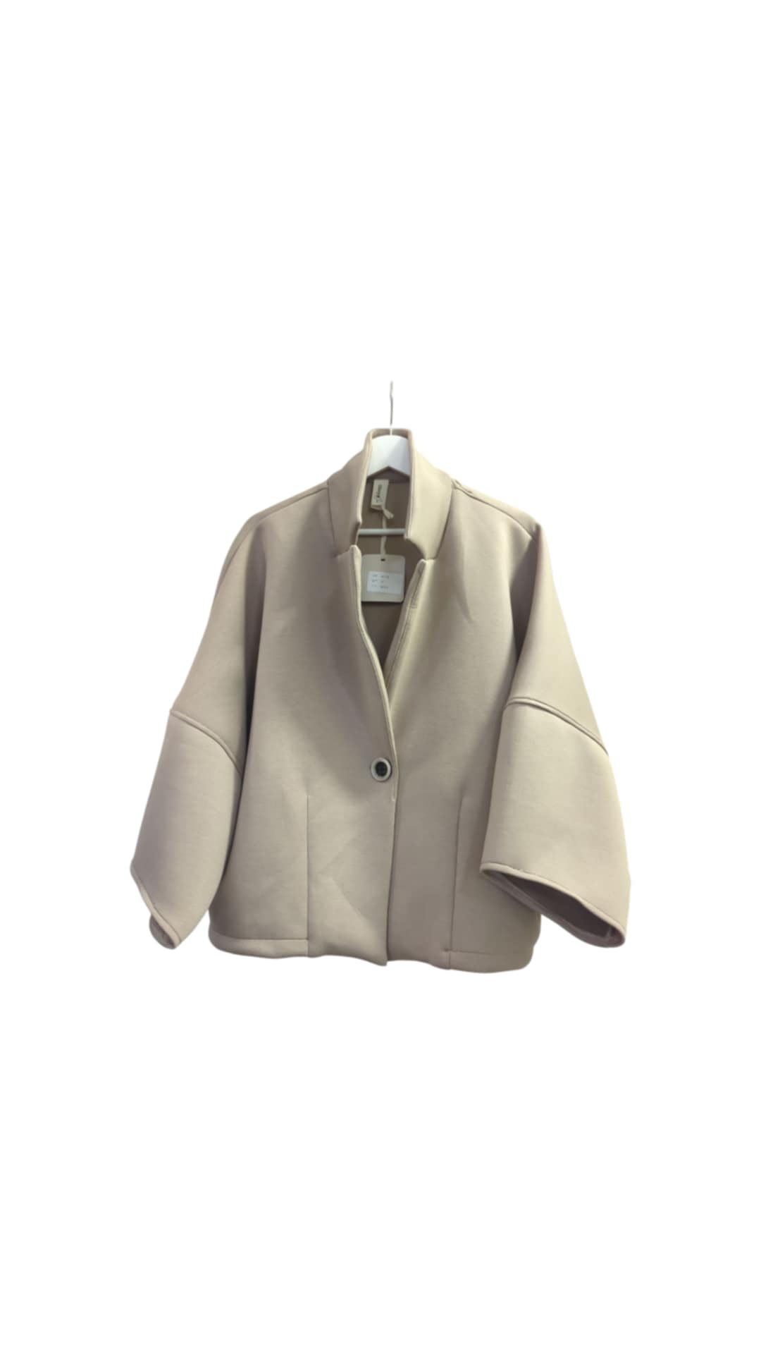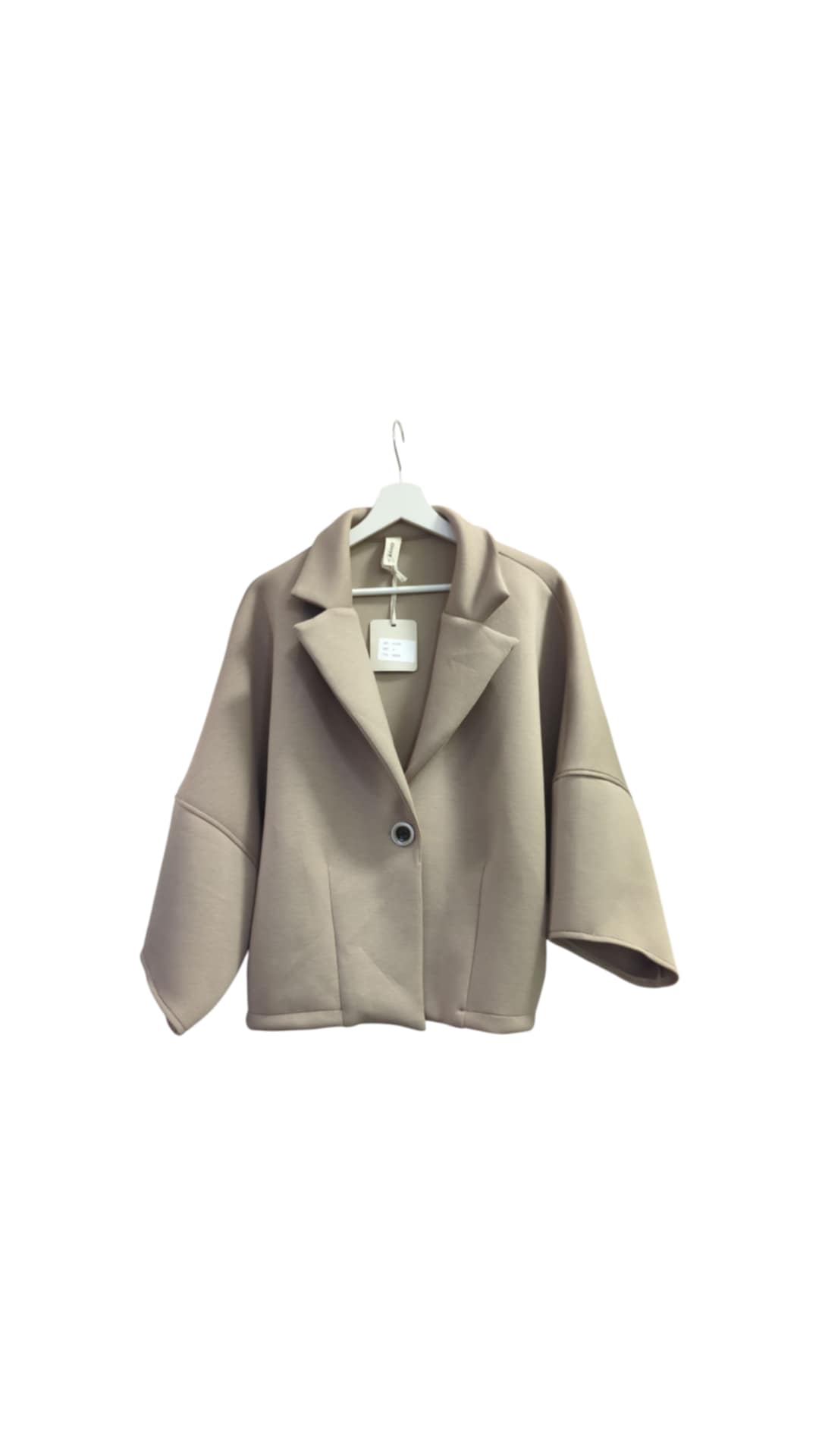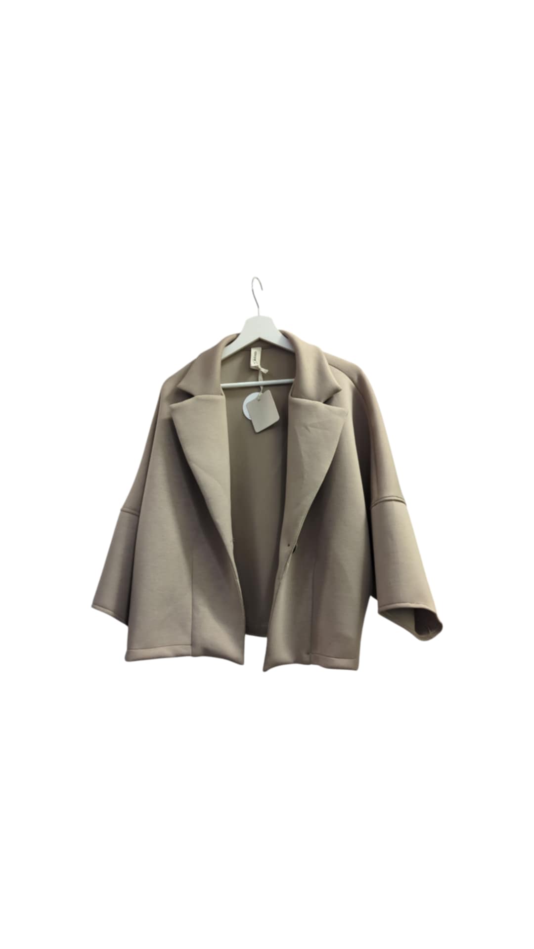 Švarkas vieno dydžio Gioya – Trikotažas. Tai didesnio dydžio, patogus dėvėti, vidus be pamušalo, šviesiai rudas, balinta kava, susagstomas, lengvas. Švarkas susagstomas, apimtis reguliuojamas perkeliant sagas.