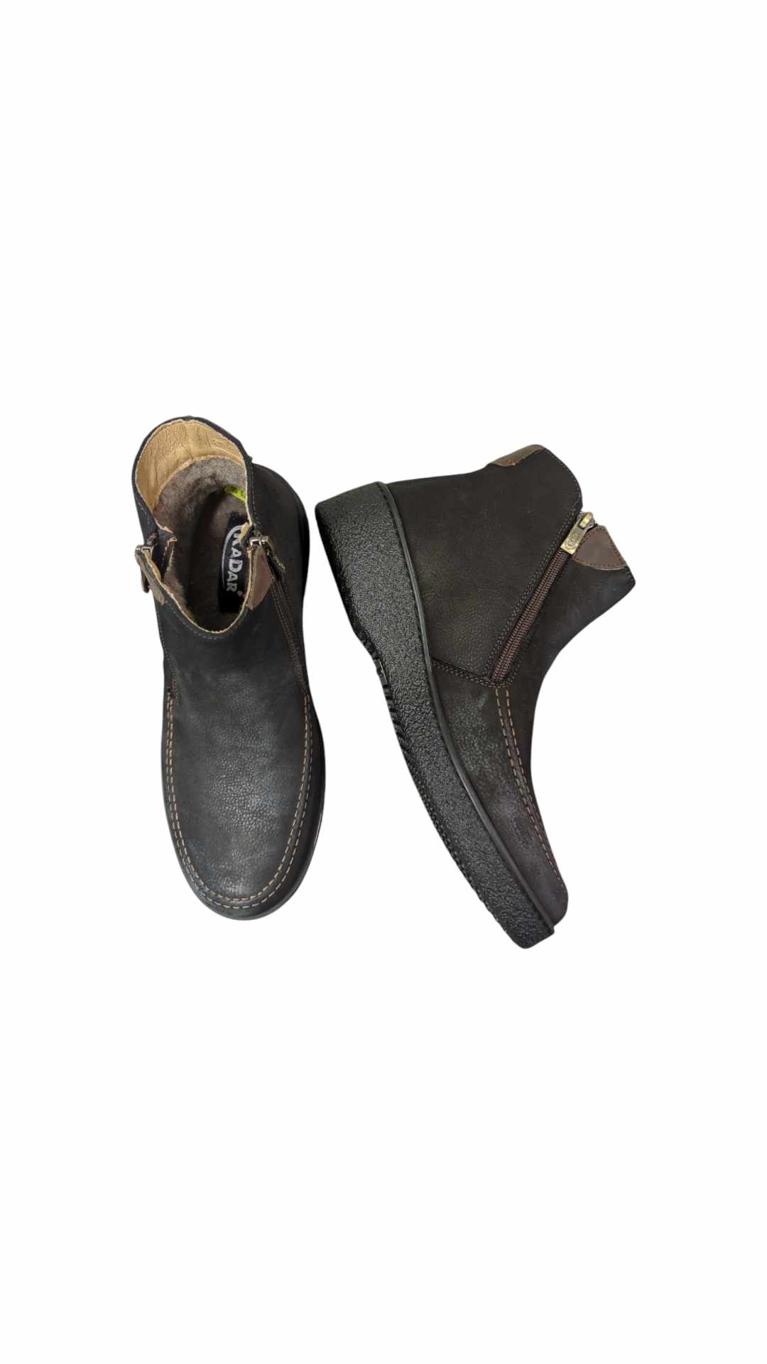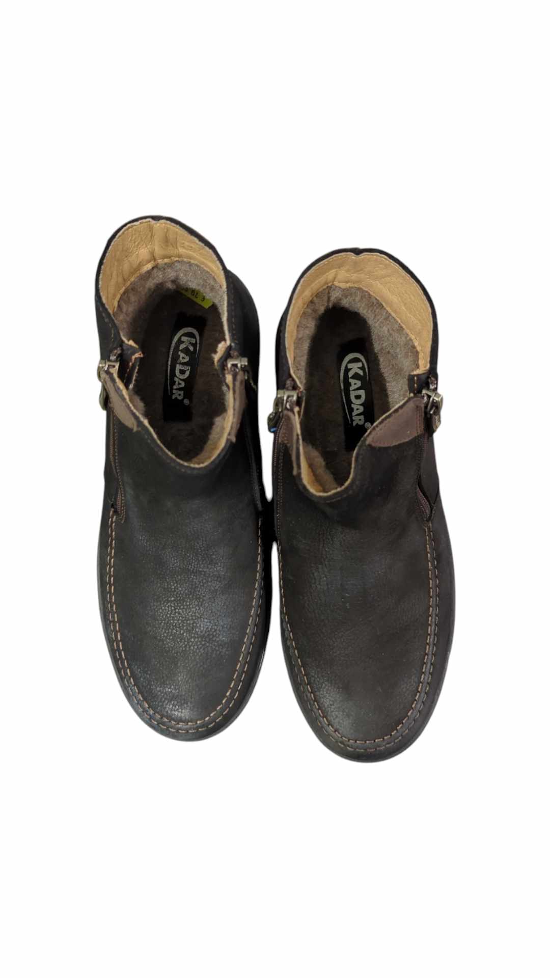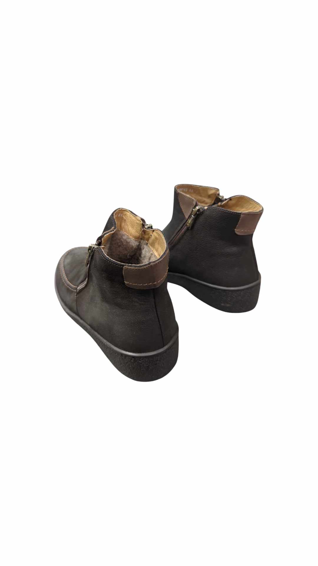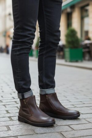Vyriška odinė avalynė, vidus – stora vilna, užsegami užtrauktuku, pilno pado.