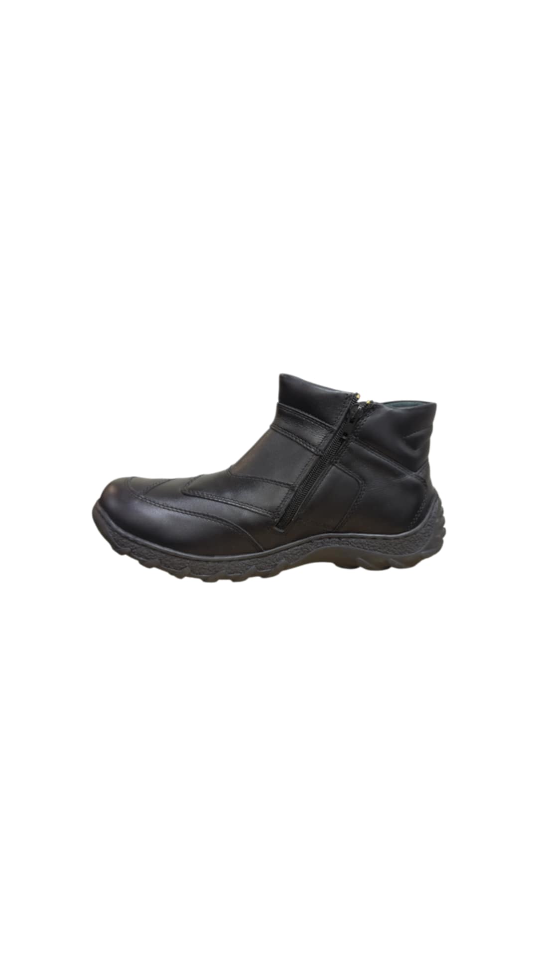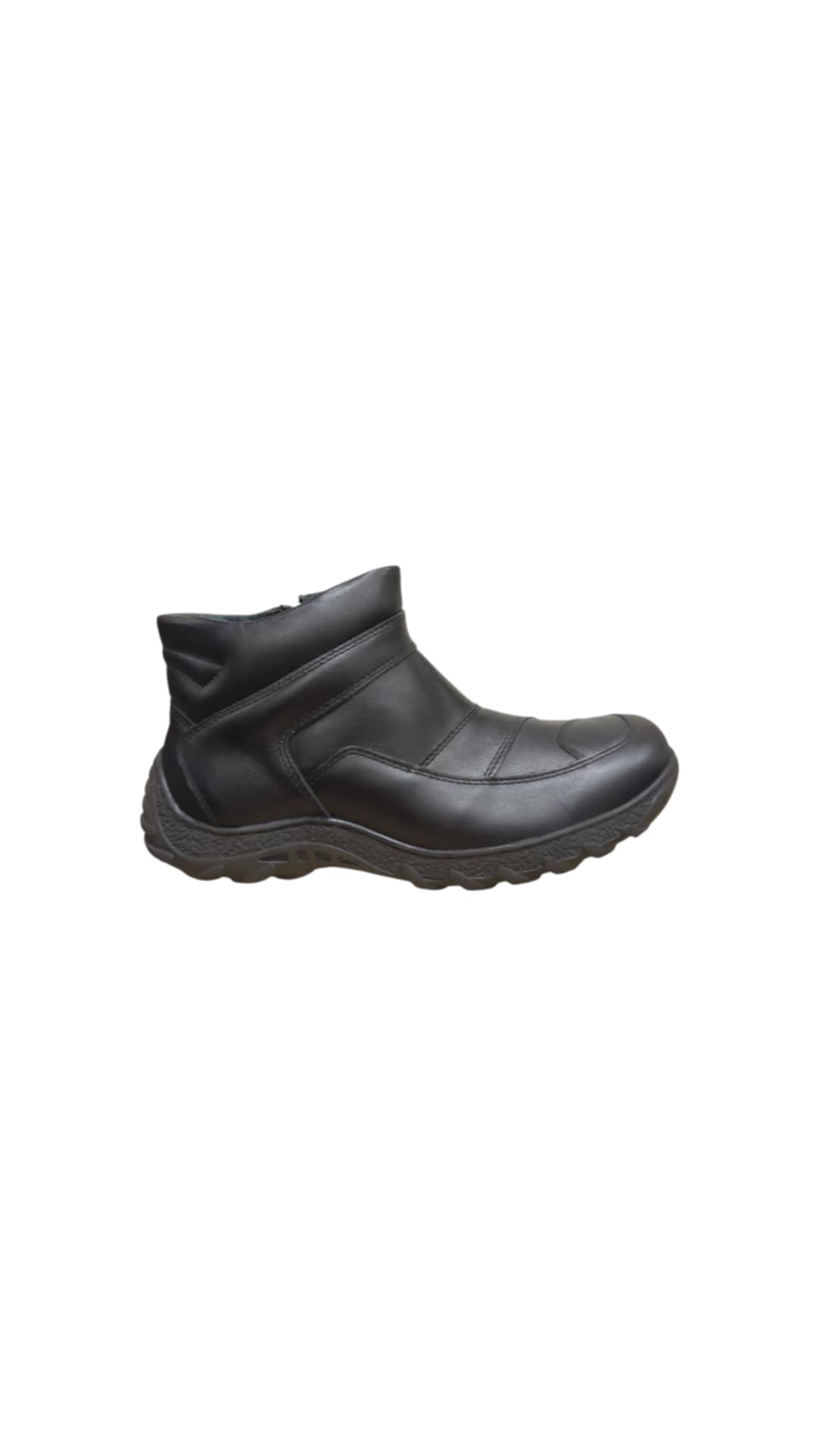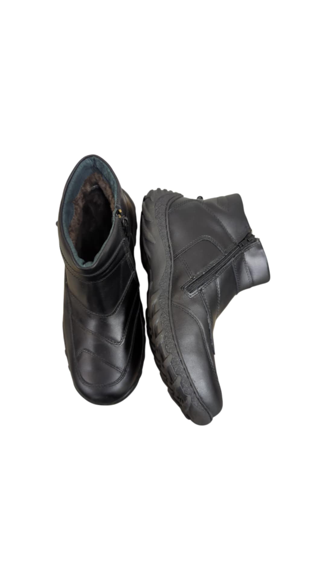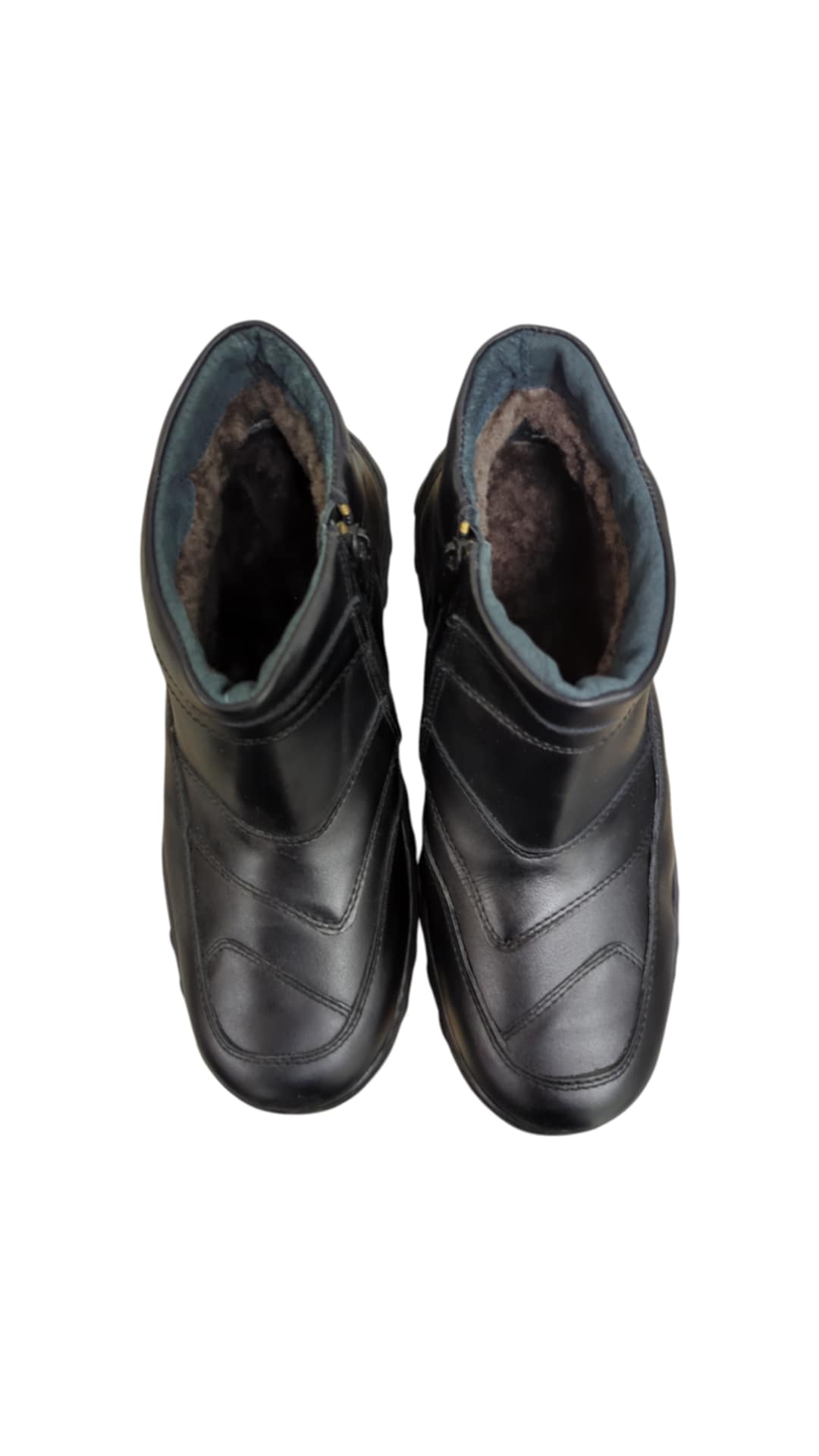 Vyriška odinė avalynė, vidus – natūralus kailis, užsegami užtrauktuku, aukštesniu aulu, lygi oda.
