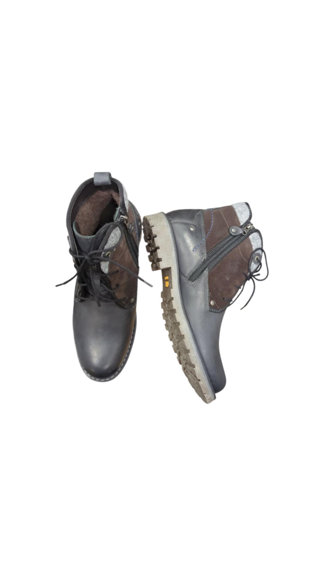 Vyriški odiniai aulinukai, vidus natūralus kailis, suvarstomi ir užsegami užtrauktuku, padas – kaučiuko.